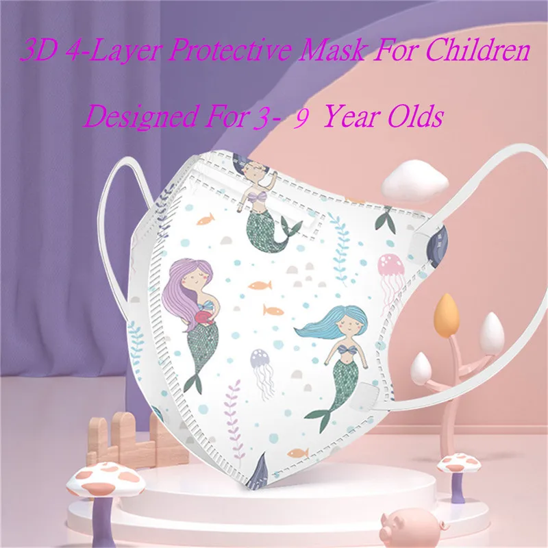 FFP2 Mascarillas KN95, детей, с рисунком маски, 4 слоя маска для лица KN95 для девочек респиратор защитное детская KN95 маски подходят От 3 до 9 лет
