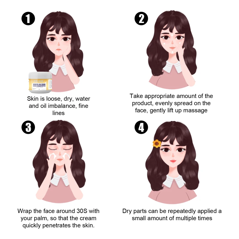 Использование: После очищения лица, увеличьте количество на лице и шее, а затем мягко массируйте кожу до впитывания, улучшите эффект утром и вечером.