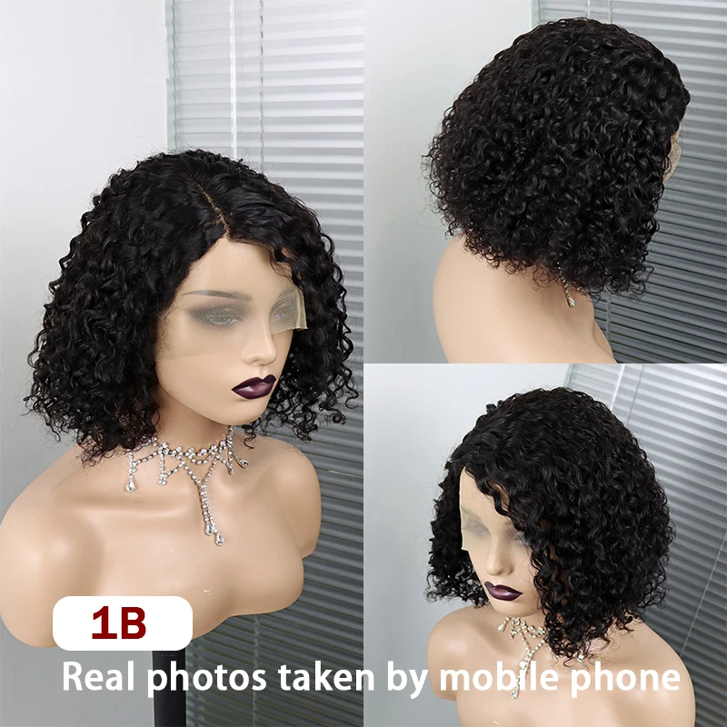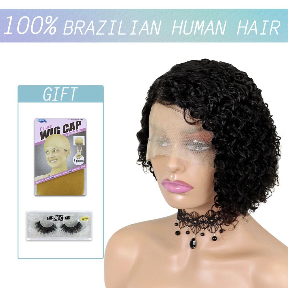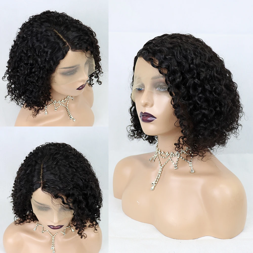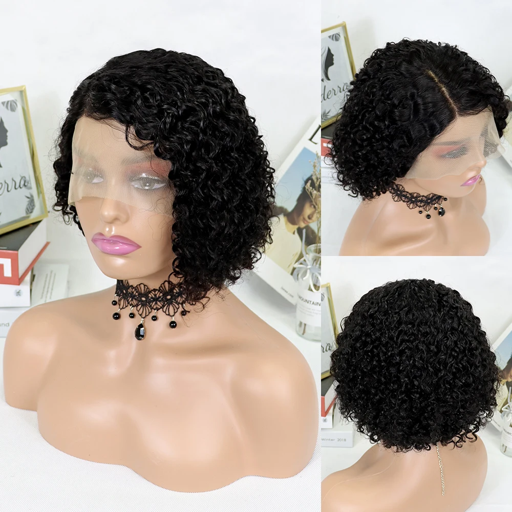 Парик с кудрявыми волосами, недорогие короткие парики из человеческих волос с застежкой на сетке, 13x4, бразильские волнистые волосы с короткими кудрявыми волосами