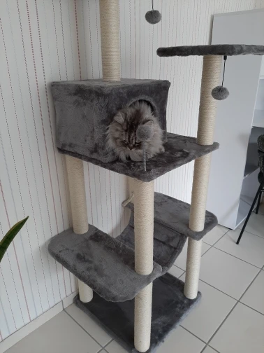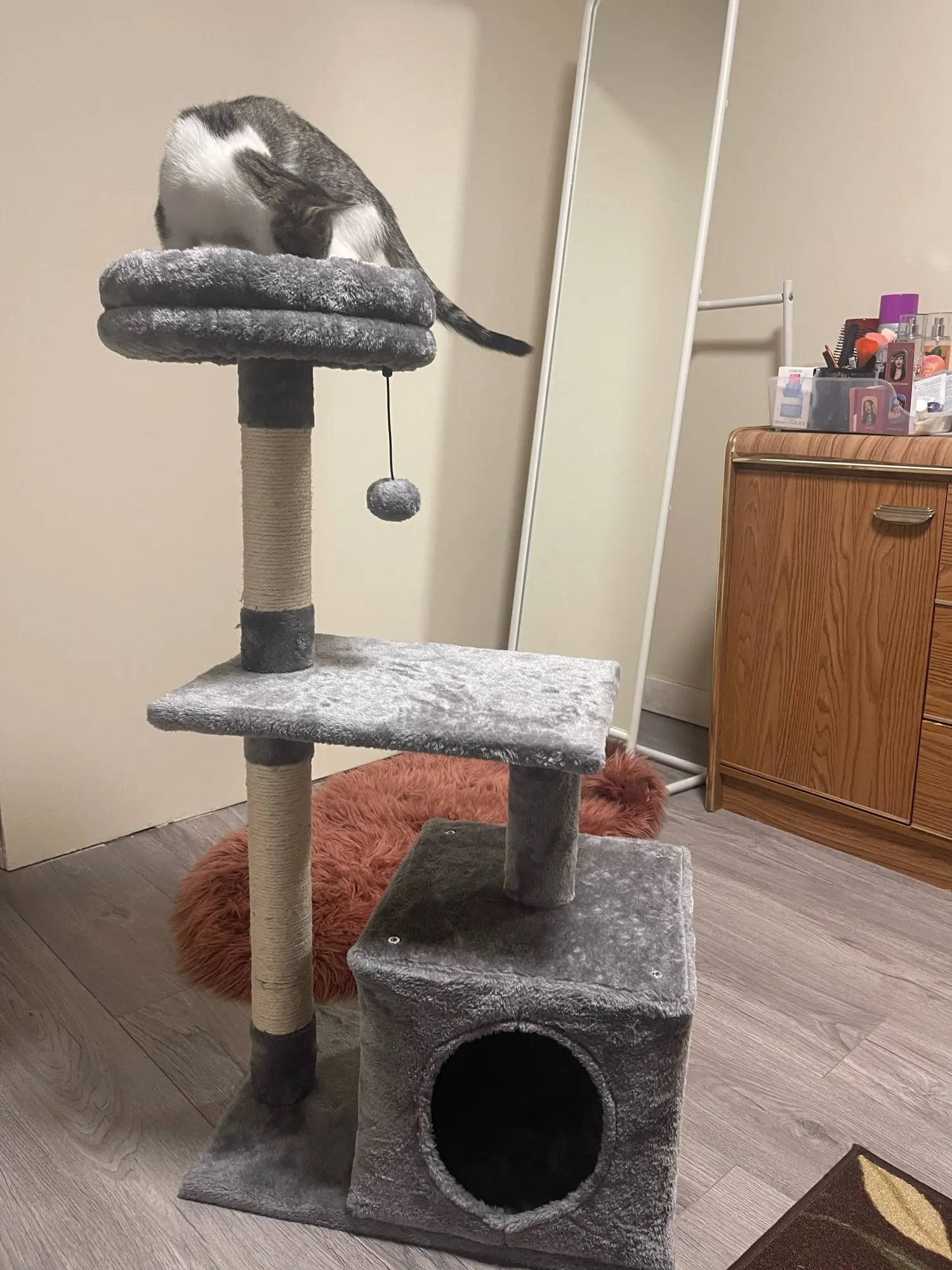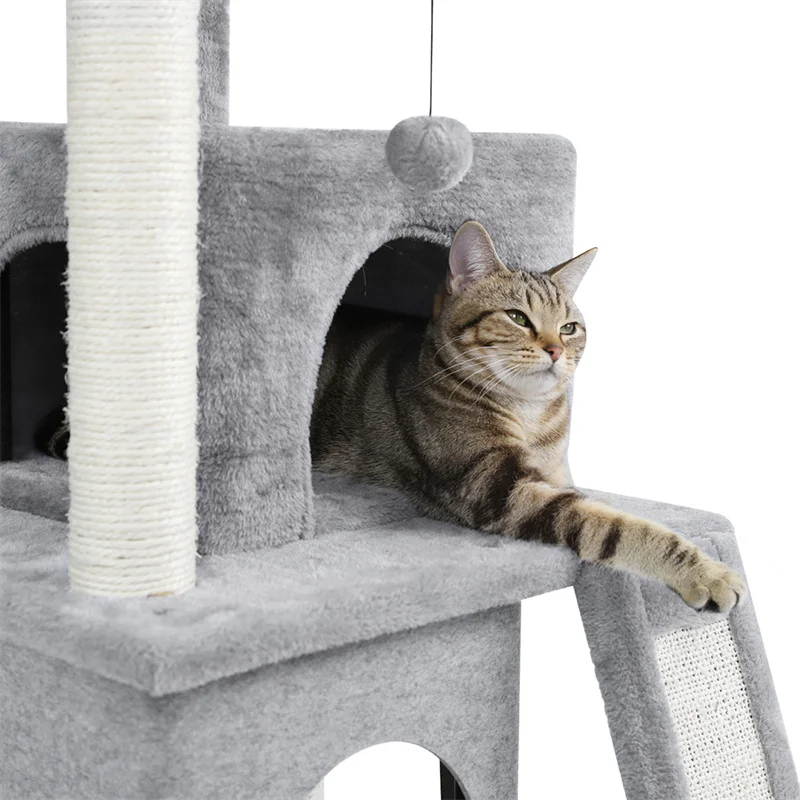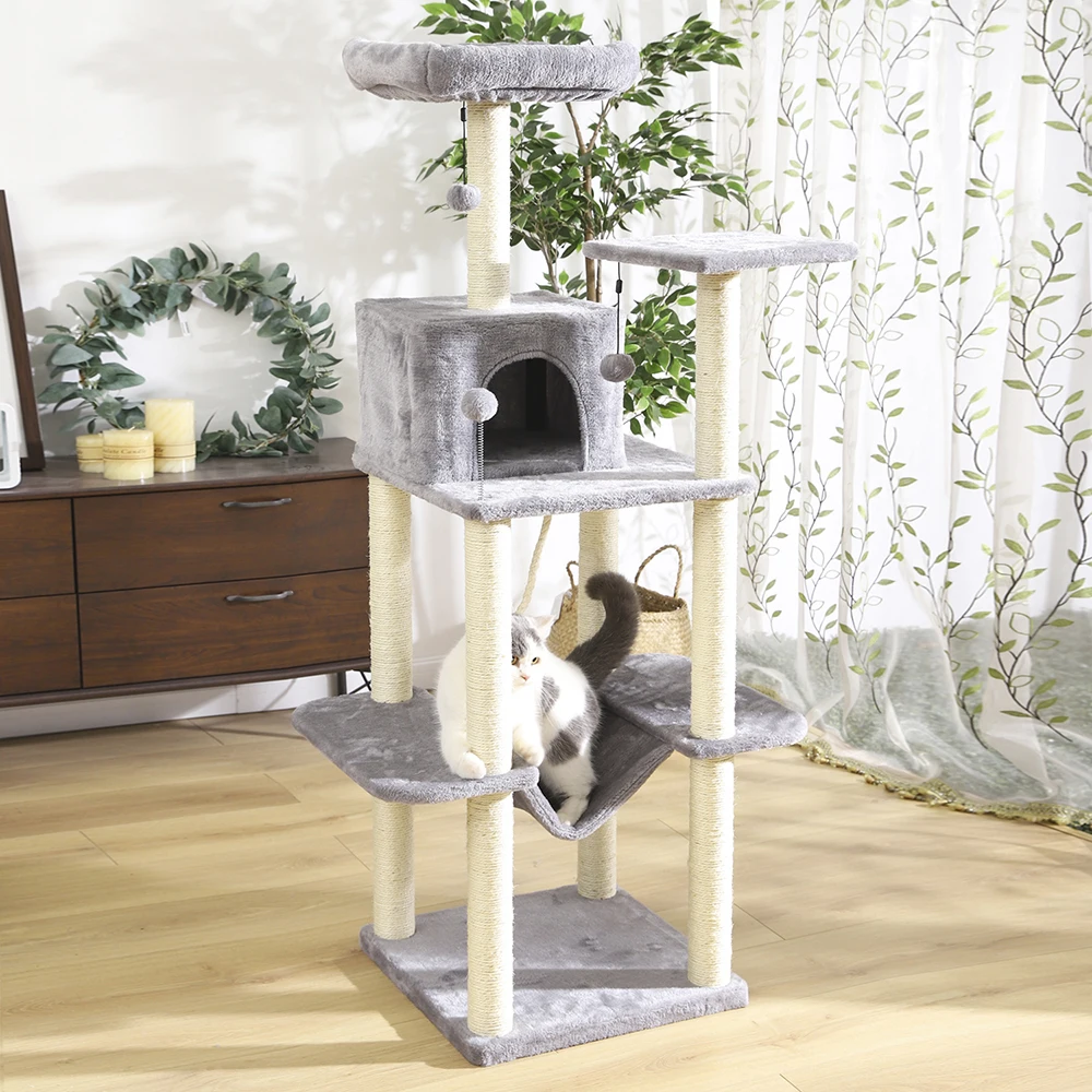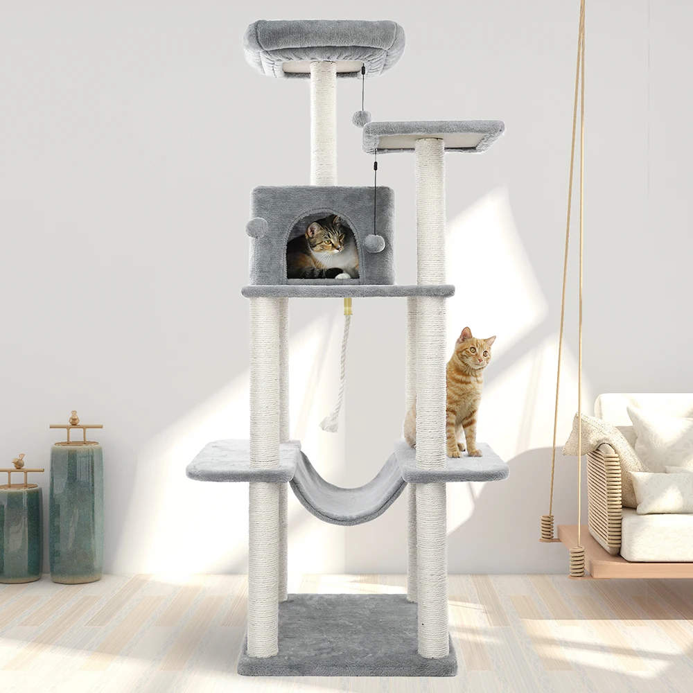 Роскошные башни для кошек с изображением кошачьего дерева с двумя контурами, просторный гамак для кошек, полностью закрытый когтеточный столб и Висячие шарики