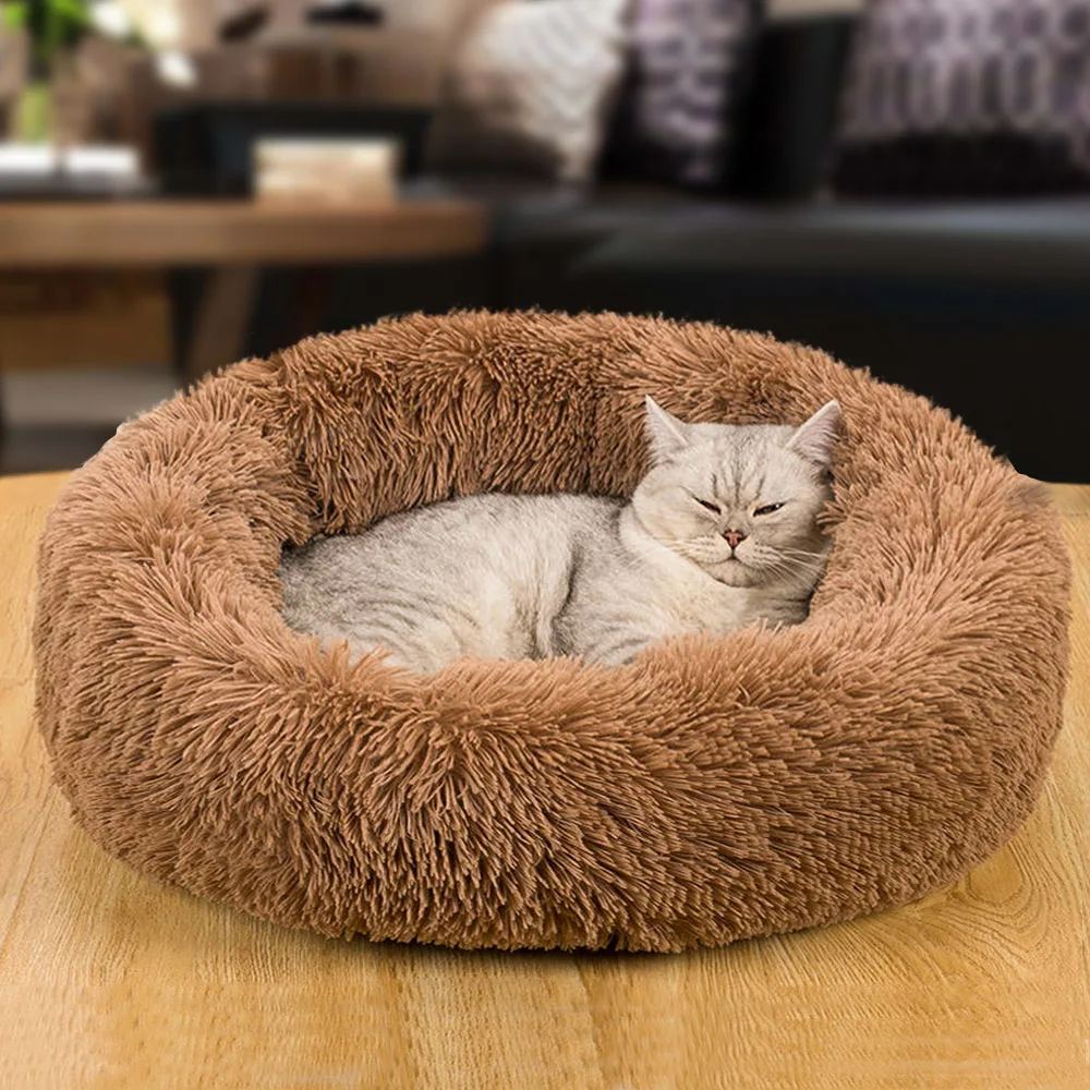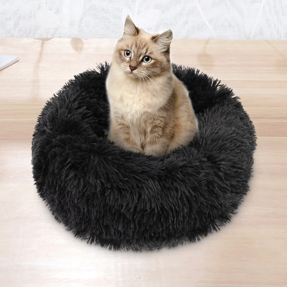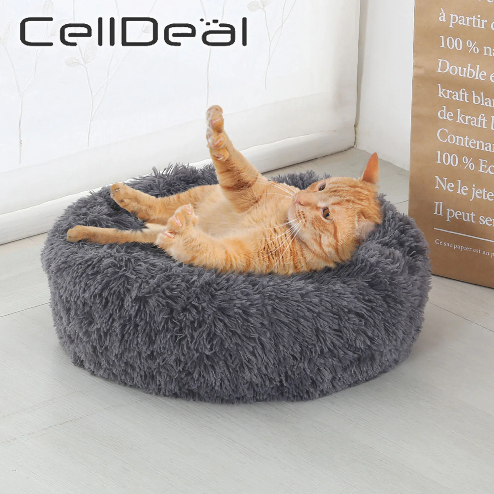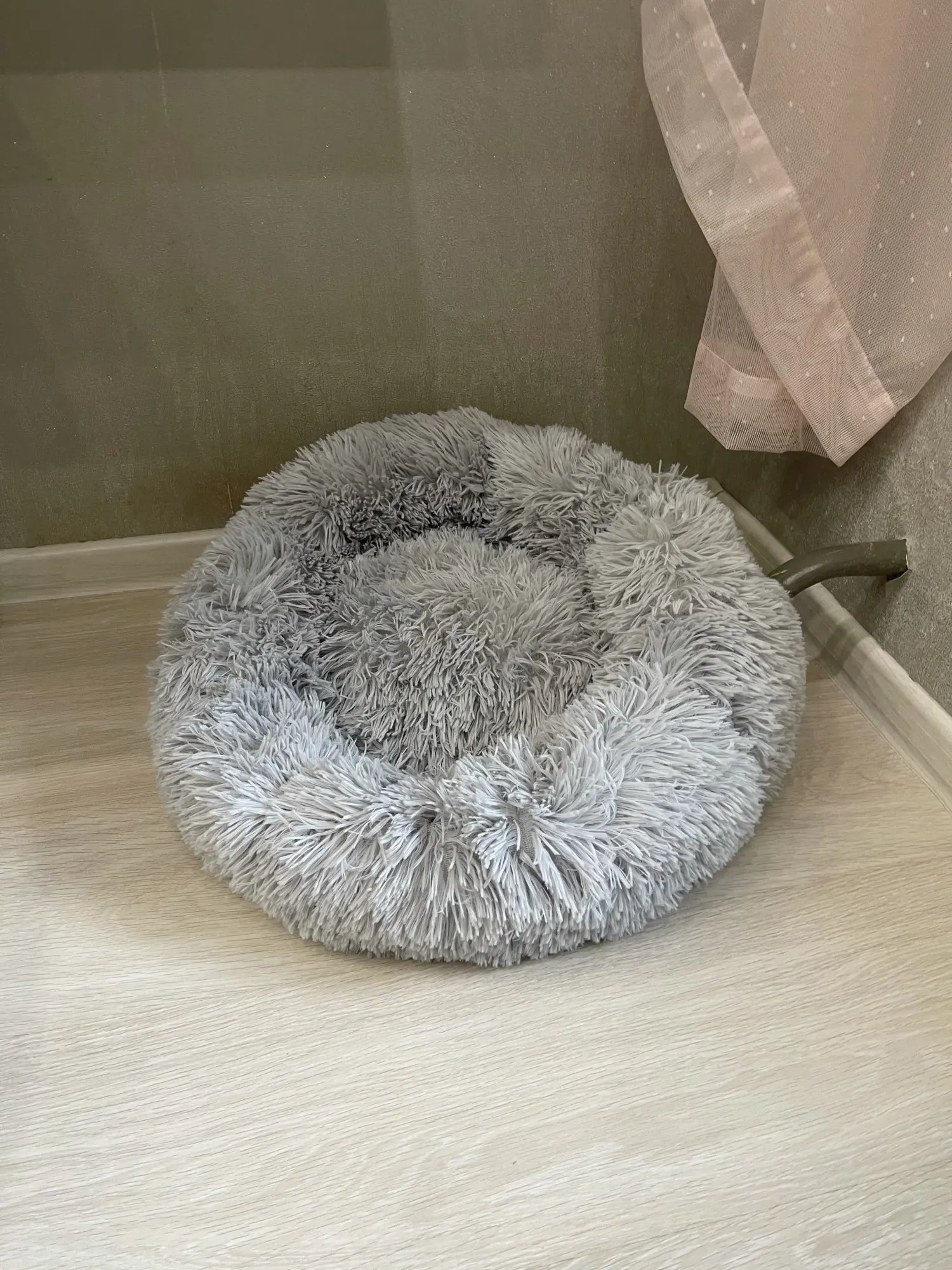 Круглая кровать для кошек, домашних питомцев, мягкий длинный плюшев...