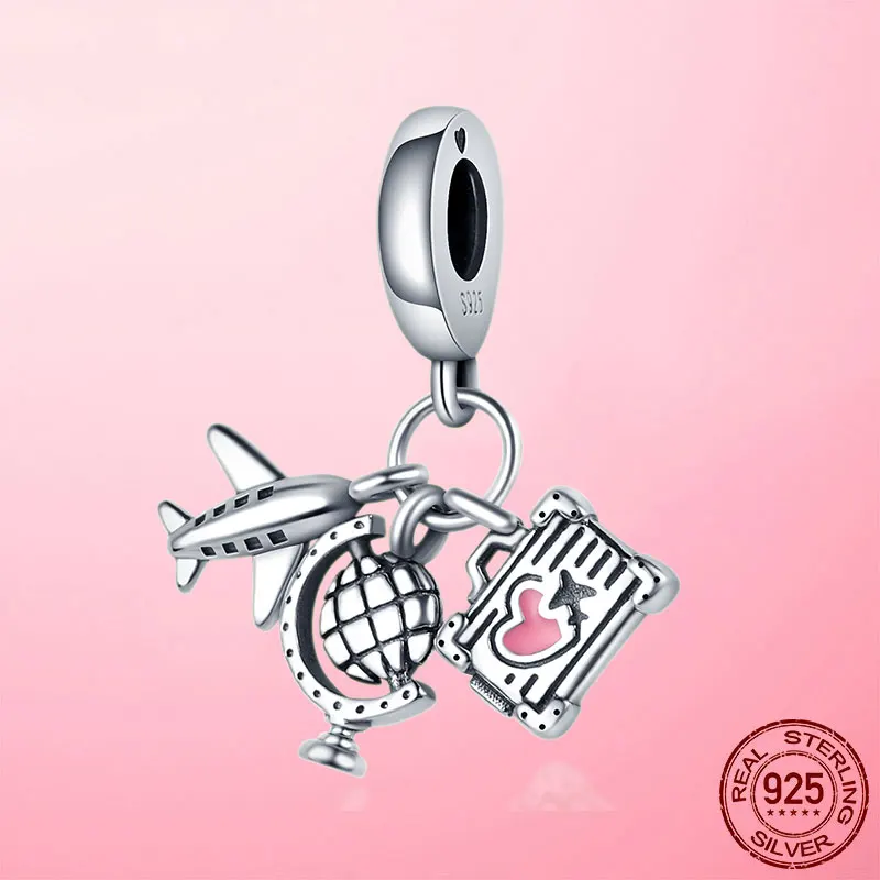 Бусины с местами путешествий 925 стерлингового серебра самолет Глобус для багажа, очаровательный, подрходит к оригиналу Pandora, браслет для изготовления ювелирных изделий, модные ювелирные украшения
