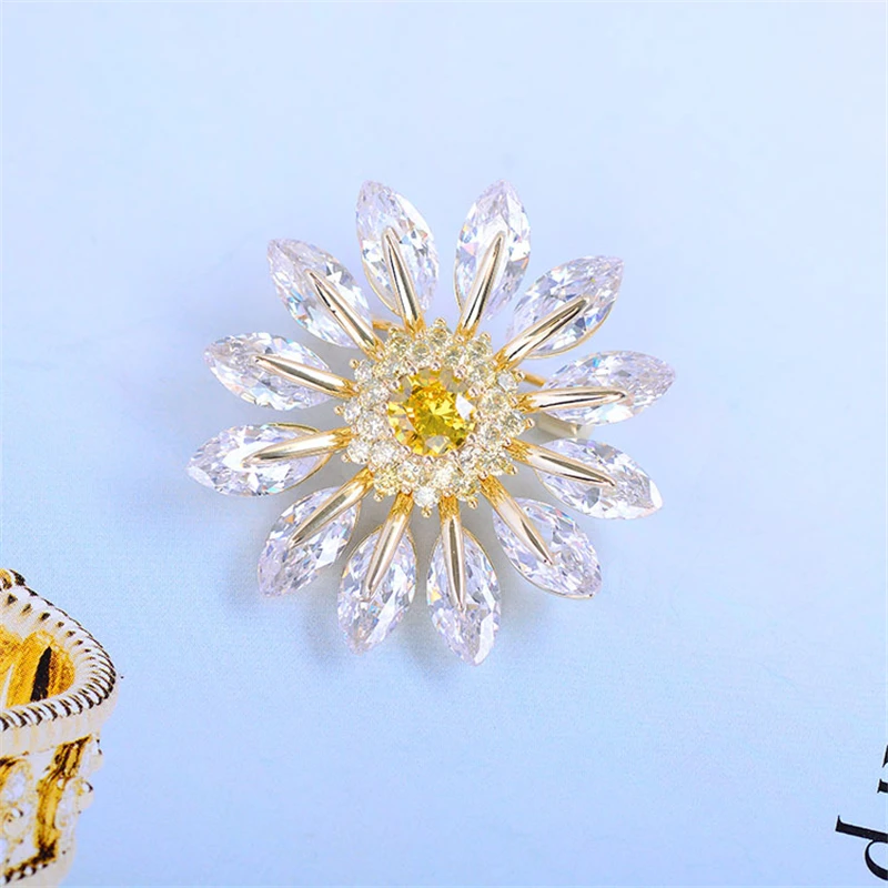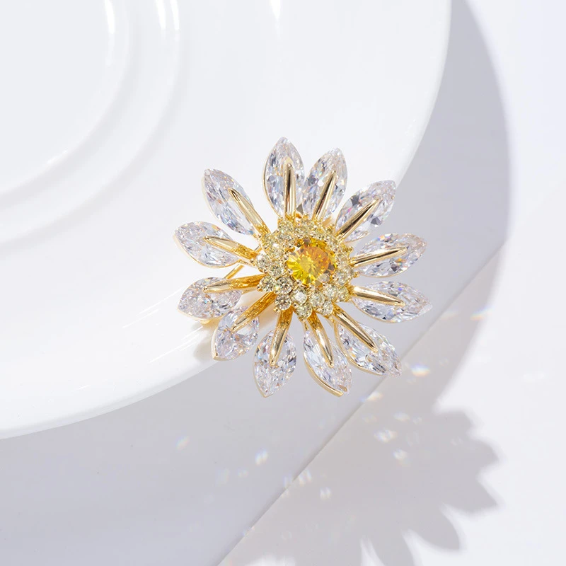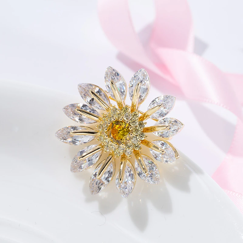 Женская брошь в форме подсолнуха, брошь с фианитом в виде маргаритки, Корсажная брошь, аксессуар для одежды, брошь на булавке для шарфа, свитера, подсолнуха