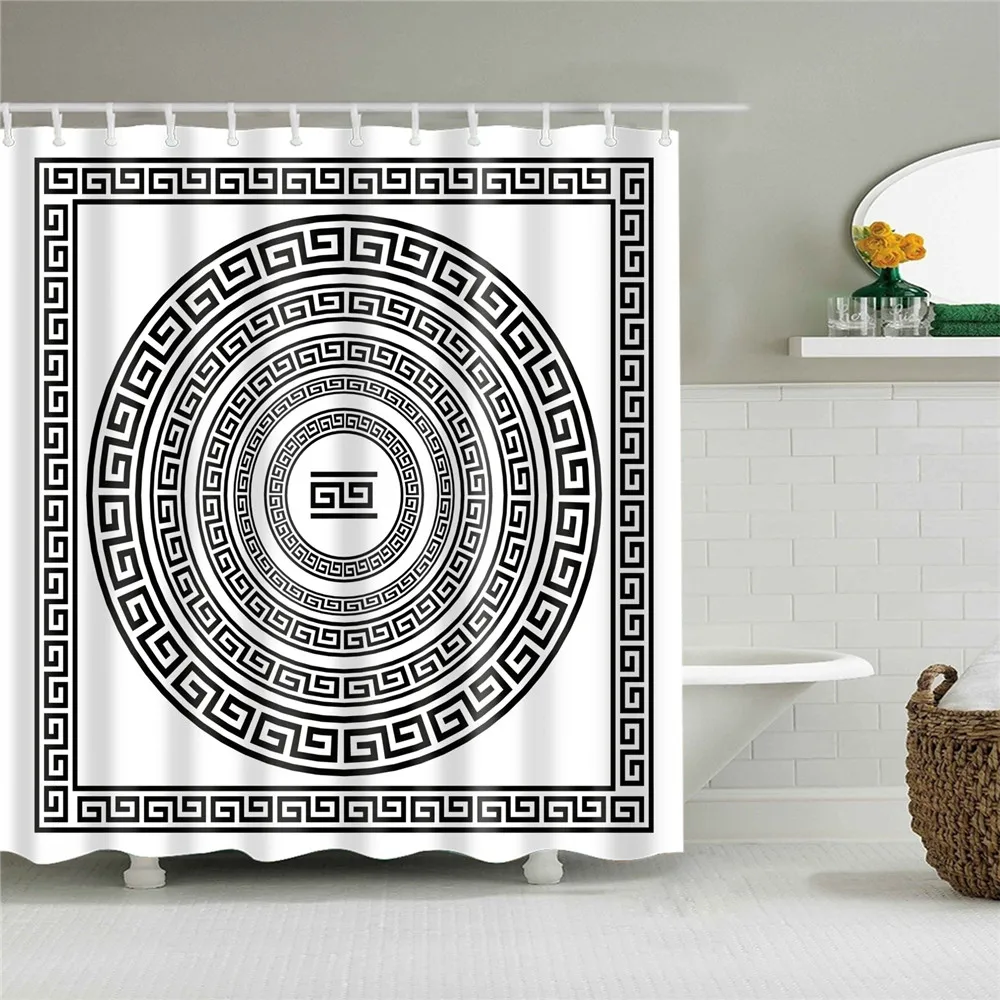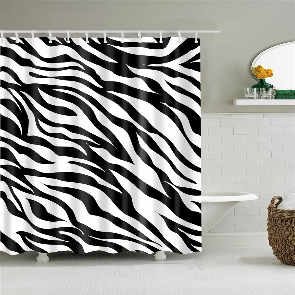 Занавеска для душа из полиэстера, водонепроницаемая, черно-белая