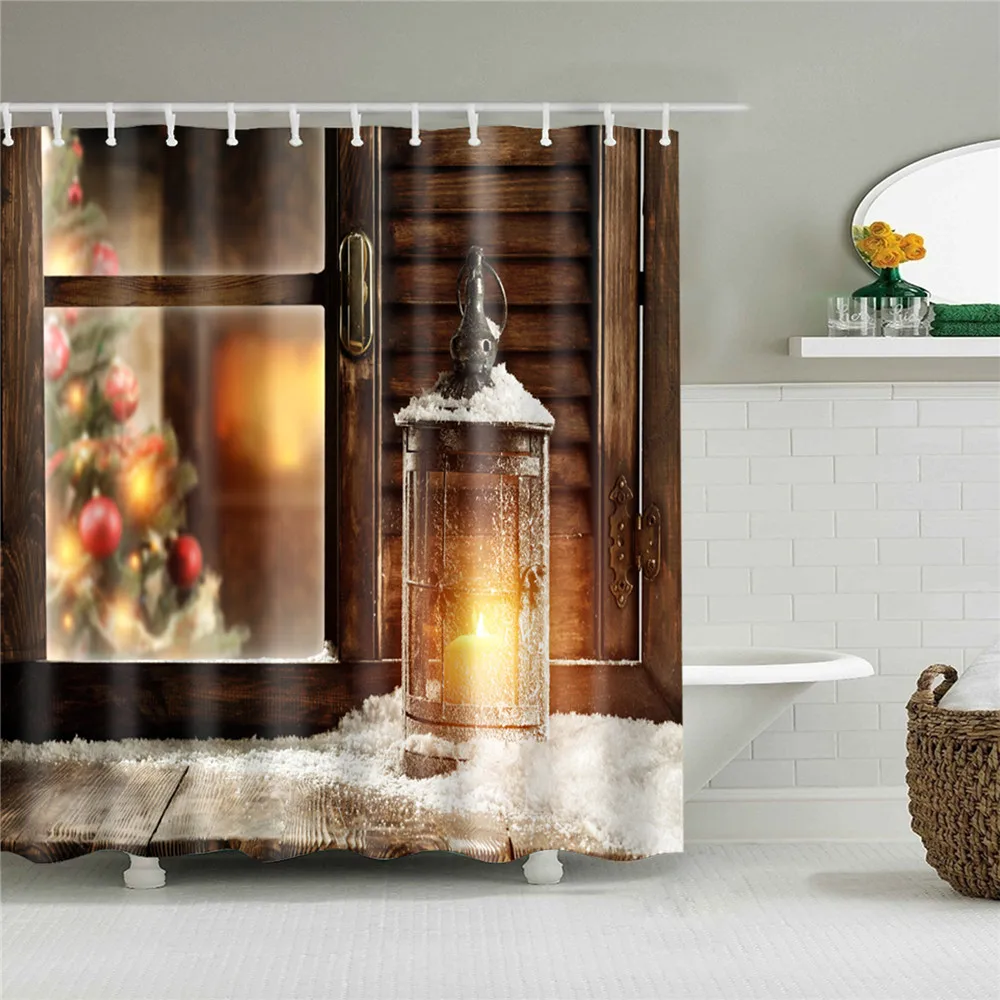 Занавеска для душа из полиэстера, водонепроницаемая, с рождественск...