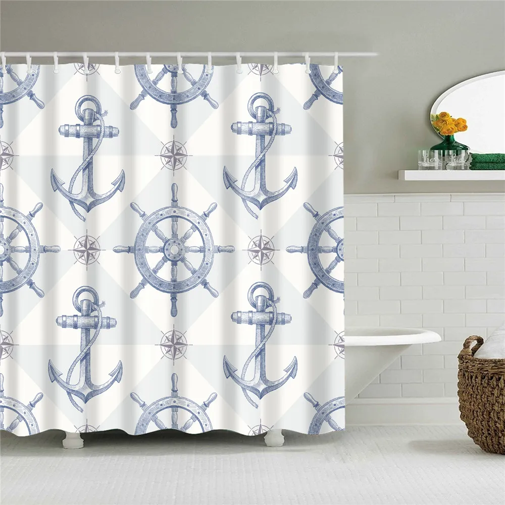 Занавеска для душа с крючками, занавеска для ванной, якорь, осьмино...