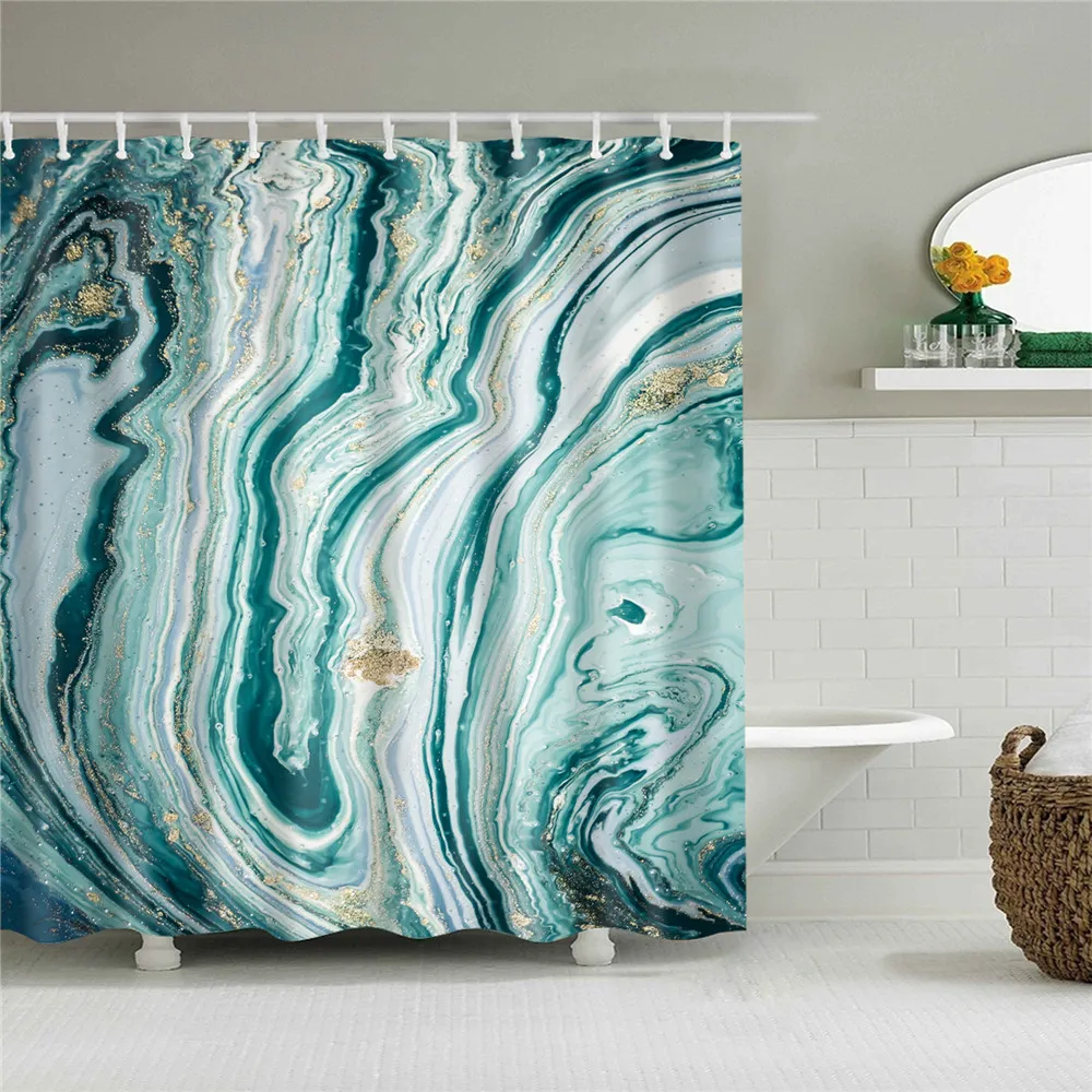 Занавеска для душа с мраморным узором и геометрическим рисунком