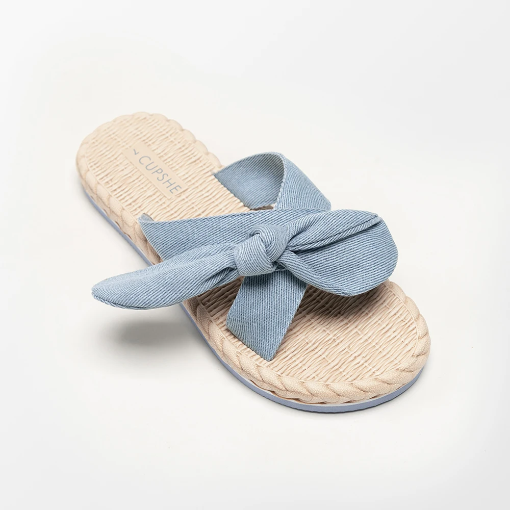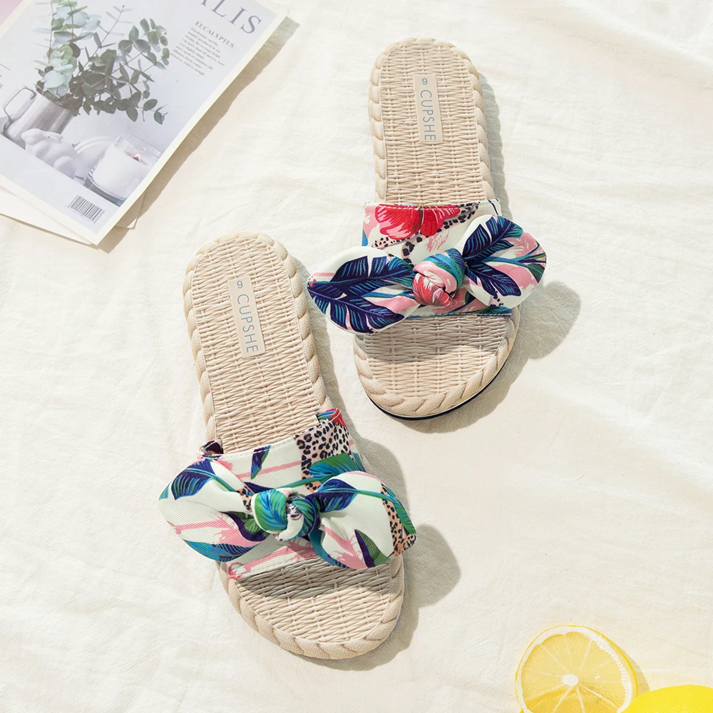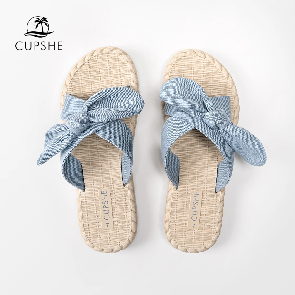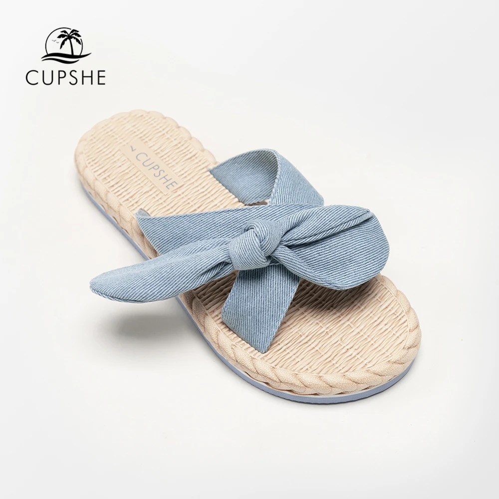 CUPSHEженские сандалии с перекрестными ремешками и бантиком; Коллекция 2022 года; Летние пляжные сандалии с открытым носком на низком каблуке; Повседневные Вьетнамки; Босоножки