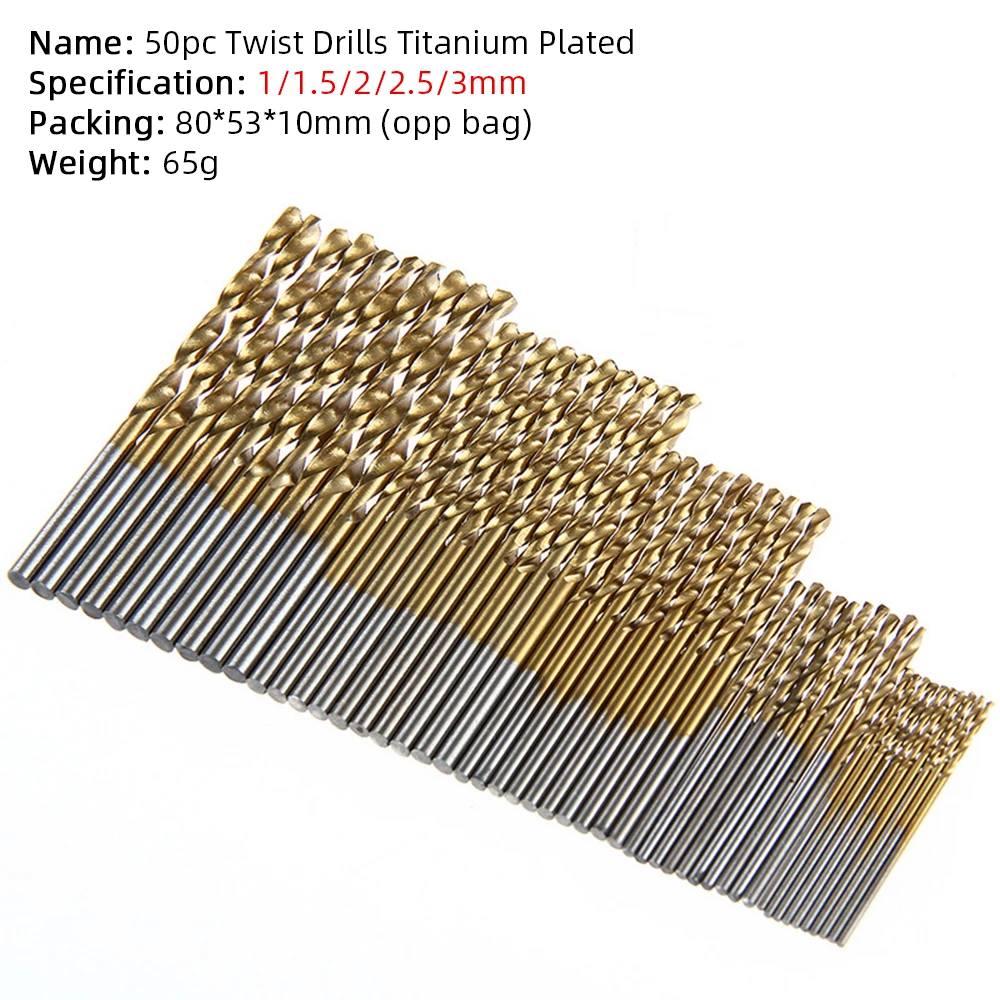 50 шт. высокоскоростная стальная сверла 1,01,52,02,53,0 мм с титано...