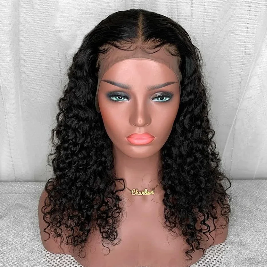 Черный кудрявый парик, синтетический парик на сетке спереди, термостойкие волосы с детскими волосами, предварительно выщипанный кудрявый парик для африканских женщин