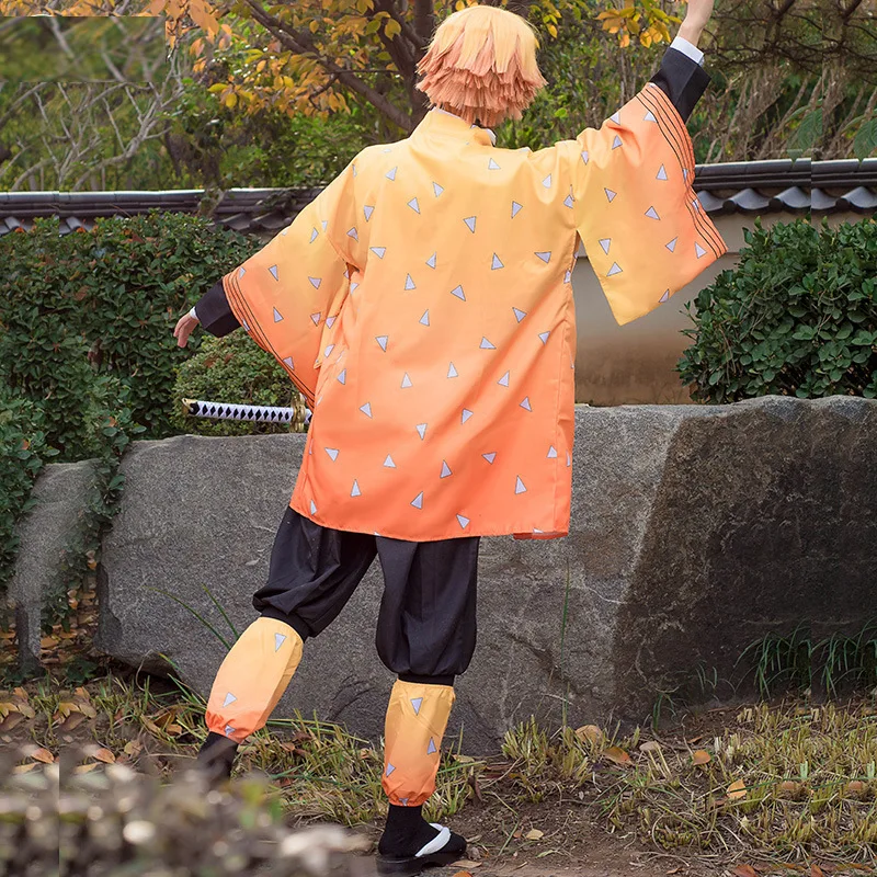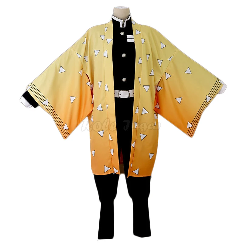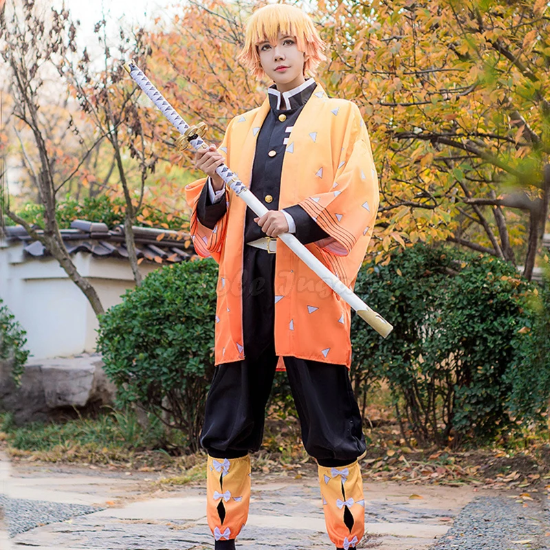 Японский аниме демон убийца Косплей Костюм Kimetsu no Yaiba Agatsuma зенитсу кимоно желтый Униформа Наборы для мужчин мальчиков C90C36