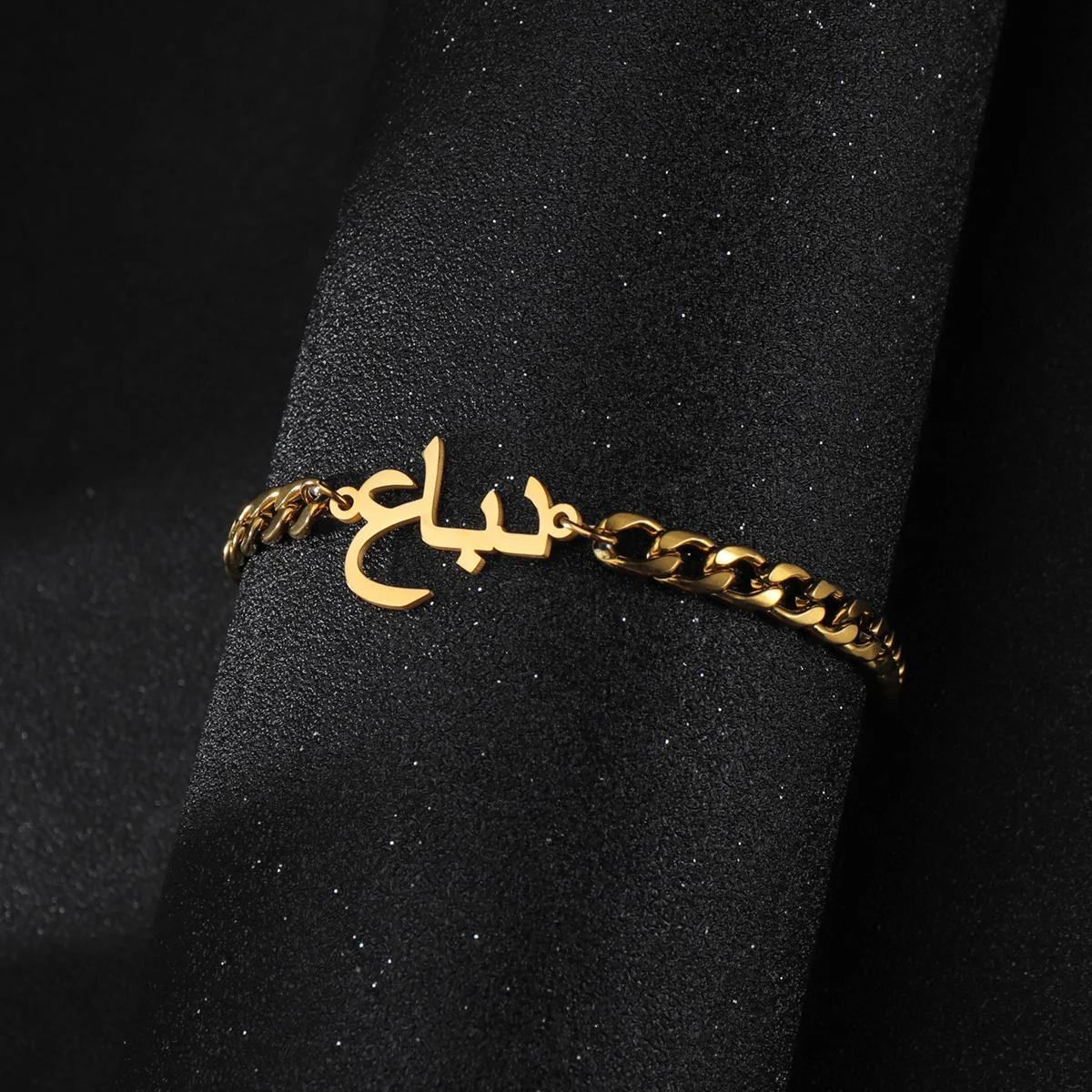 Atoztide на заказ арабское имя браслет из нержавеющей стали шармы ручная цепочка гравировка буквы толстый 5 мм NK цепь браслет ювелирные изделия подарок