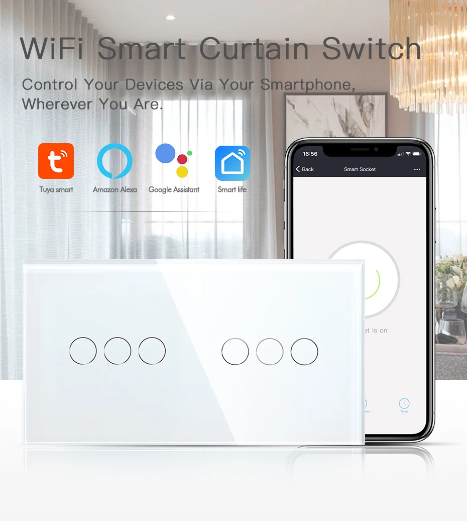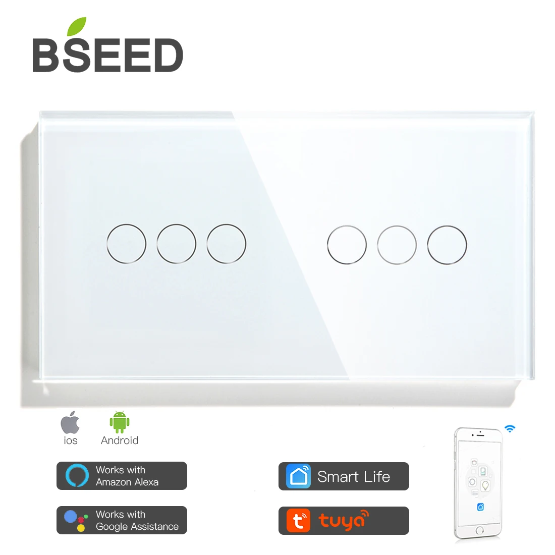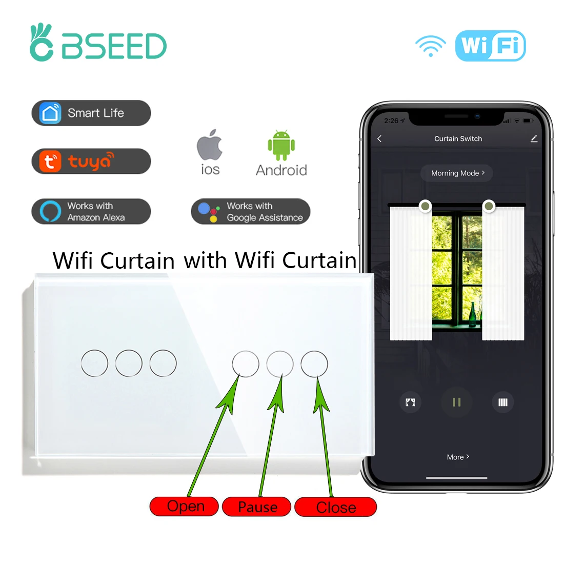 Переключатель для штор BSEED с двойным Wi-Fi, настенный сенсорный переключатель, стандарт ЕС, приложение Google Alexa Smart Life TUYA