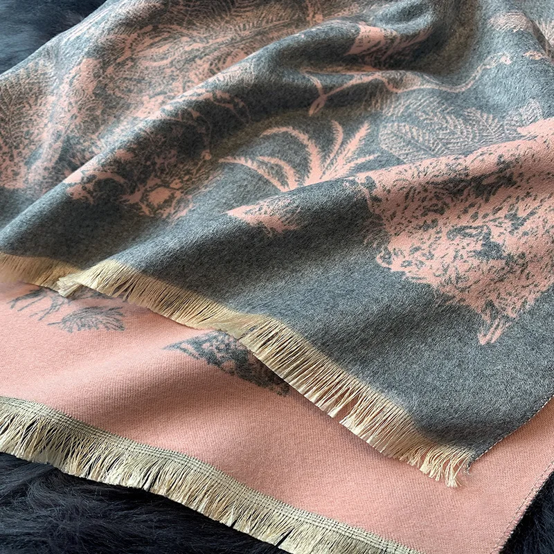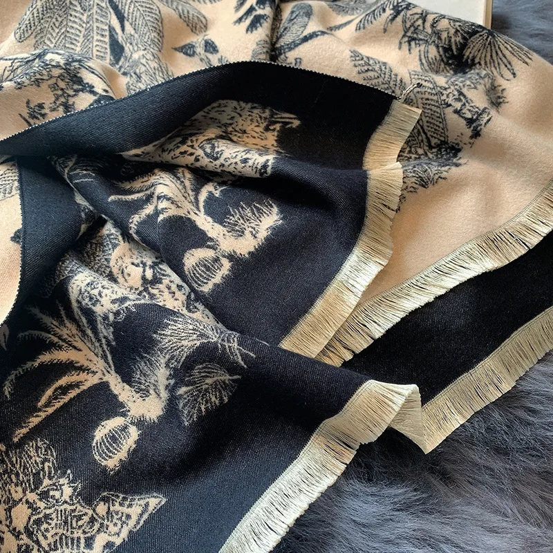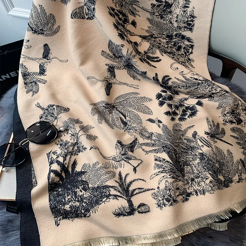 Женский кашемировый шарф с цветочным принтом, зимние шали из пашмин...