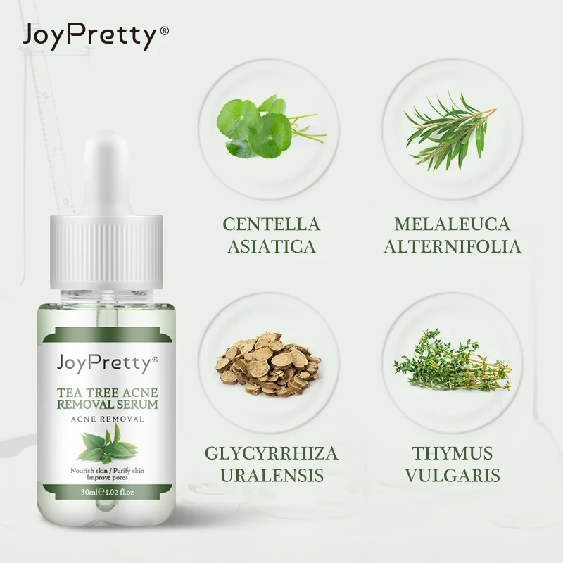 Сыворотка для удаления акне чайного дерева содержит натуральную эссенцию чайного дерева с высокой чистотой, которая отлично подходит для удаления акне. Эссенция чайного дерева содержит натуральные противовоспалительные питательные вещества и обладает превосходной увлажняющей способностью. Сыворотка для удаления угрей чайного дерева может использоваться на всем лице или с точечным покрытием на акне, чтобы уменьшить воспаление и покраснение.