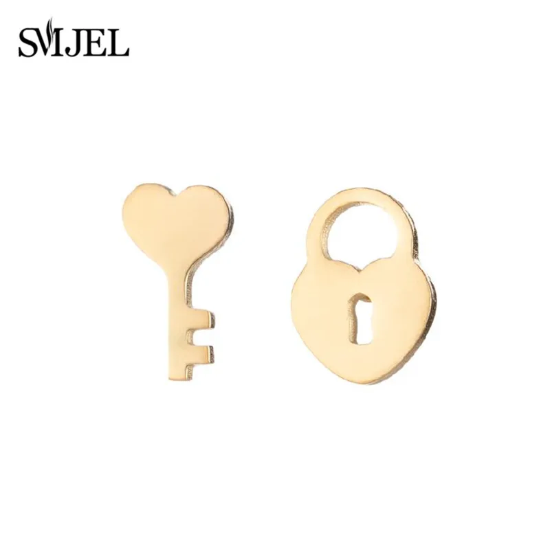 Гладкая сетка из нержавеющей стали Ключ Серьги с замком для женщин аксессуары Малый золотистый и черный ключ женские серьги асимметрия, ювелирное изделие, подарок