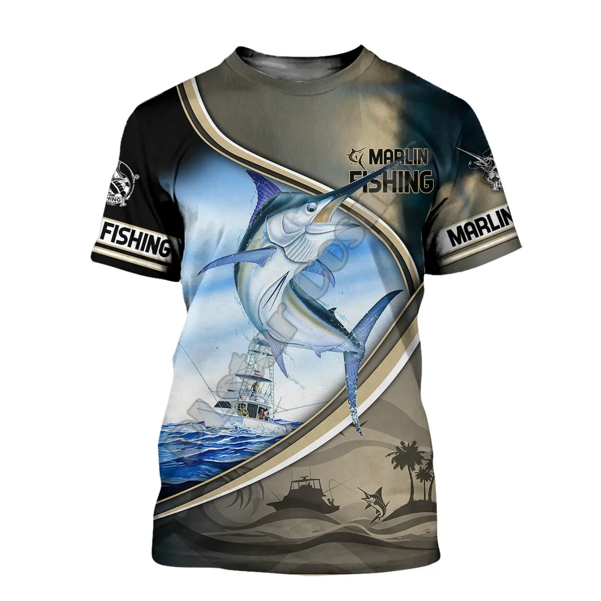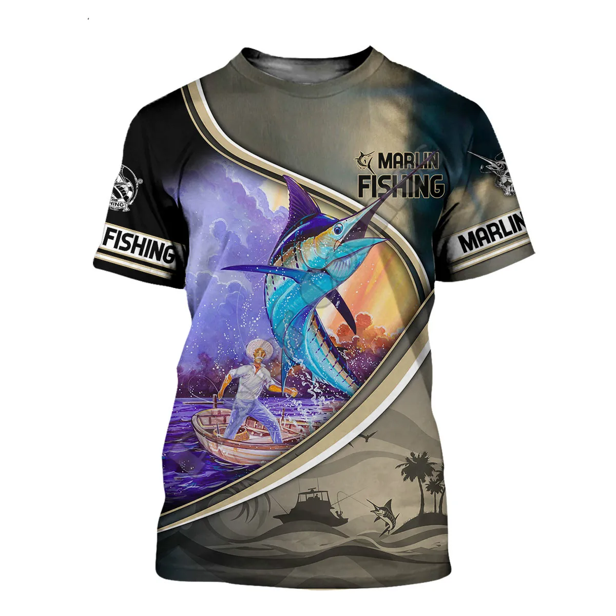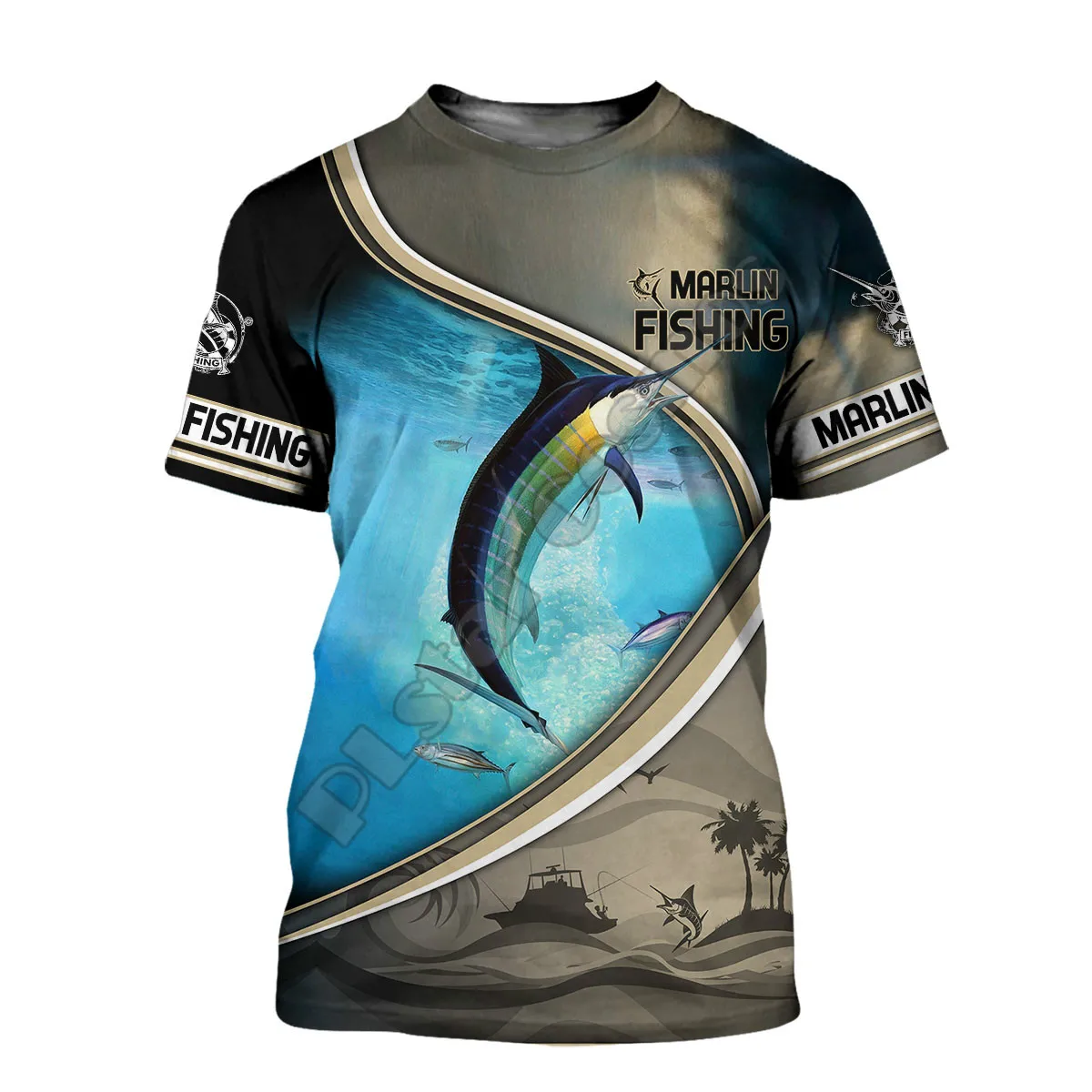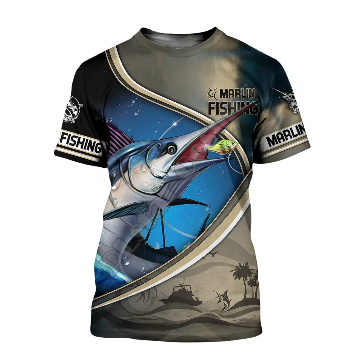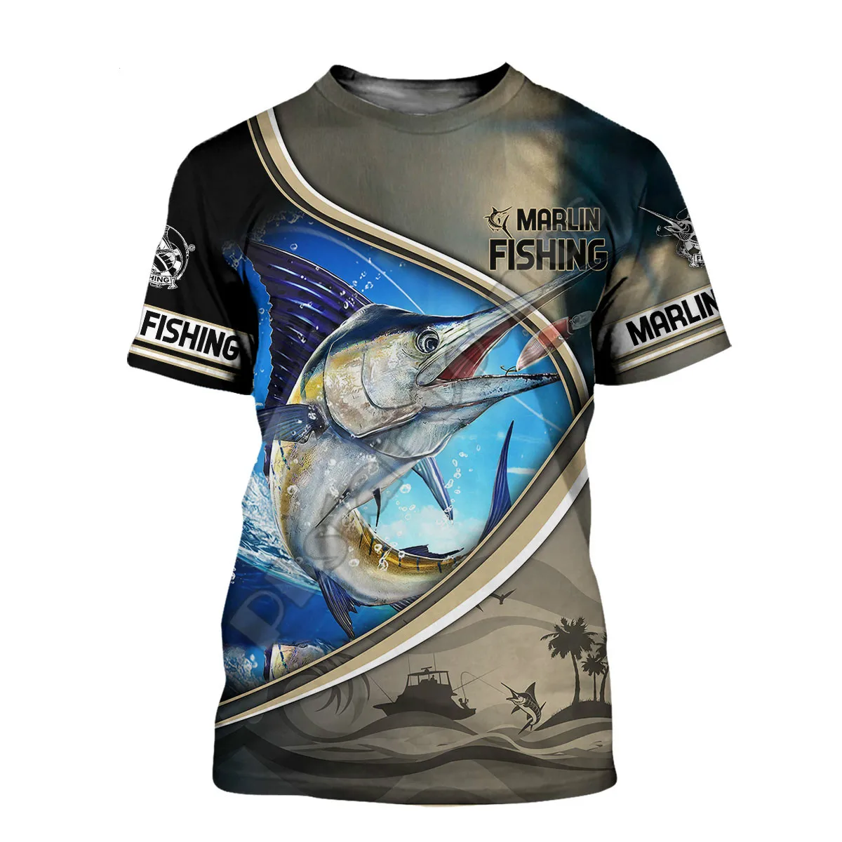 Мужская и женская футболка с 3D рисунком рыбы армейская зеленая дыш...