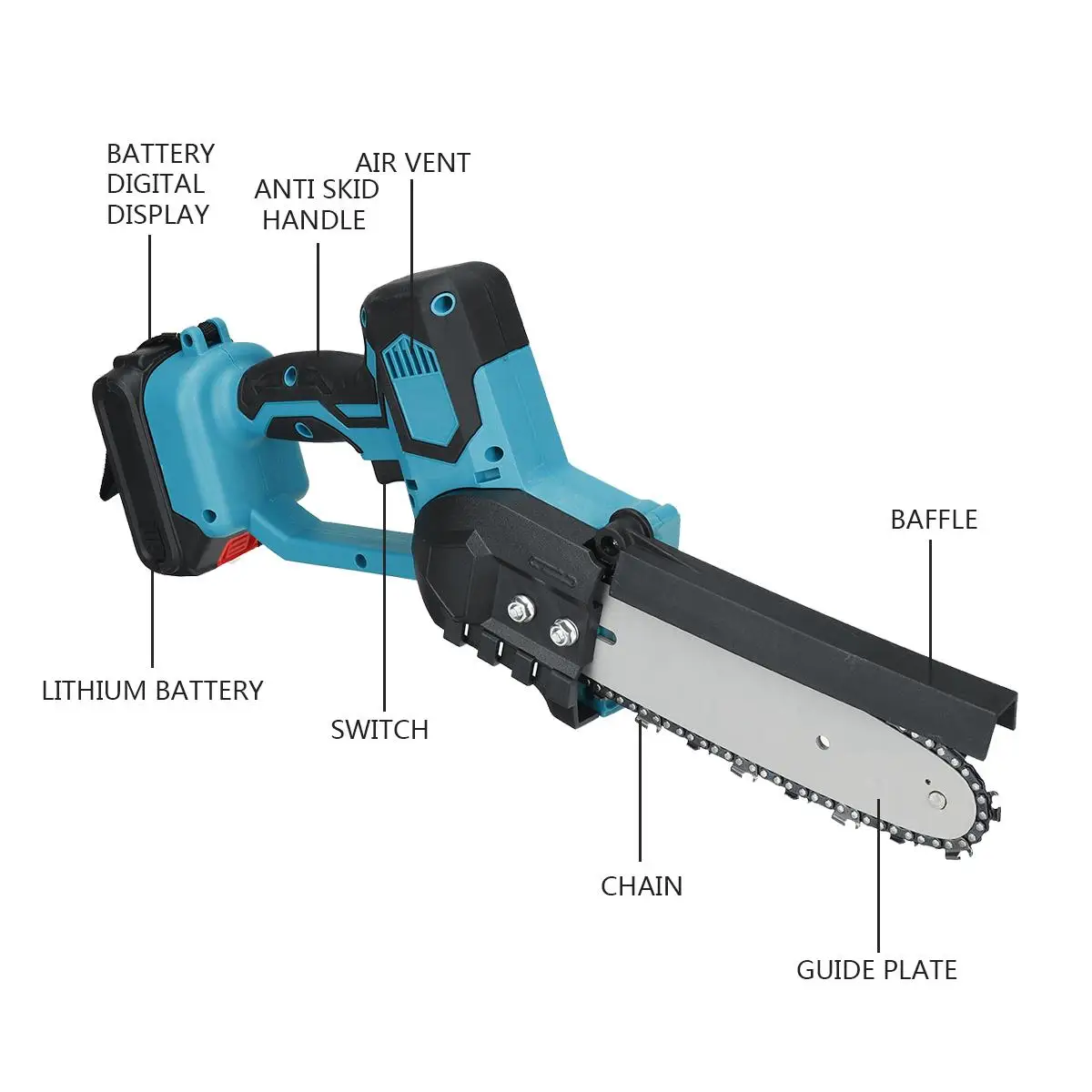 8 дюймов Перезаряжаемые Электрическая цепная пила беспроводной сада дерево регистрации обрезная деревообрабатывающая резьбовой головкой, режущий инструмент для Makita 18V Батарея