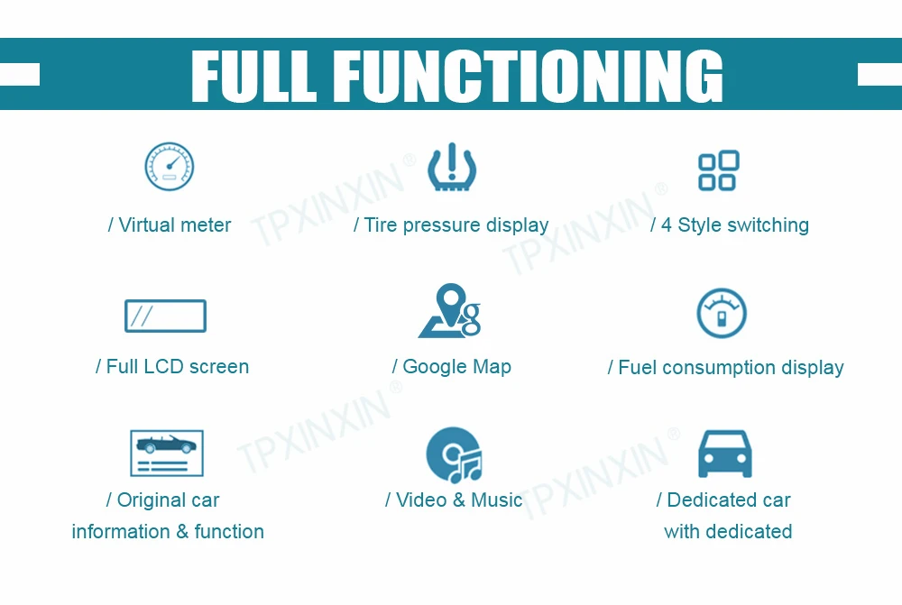Лидирующий бренд на рынке автозапчастейTPXINXIN стремится производить высококачественные, экономически эффективные автозапчасти, такие как автомобильная DVD система автомобильного радио фасции. Автомобильный видеорегистратор. Автомобильное беспроводное зарядное устройство. И так далее. У нас есть factoriesand независимые R & D команды для разработки и производства эксклюзивных частных модельных продуктов с индивидуальной конфигурацией.