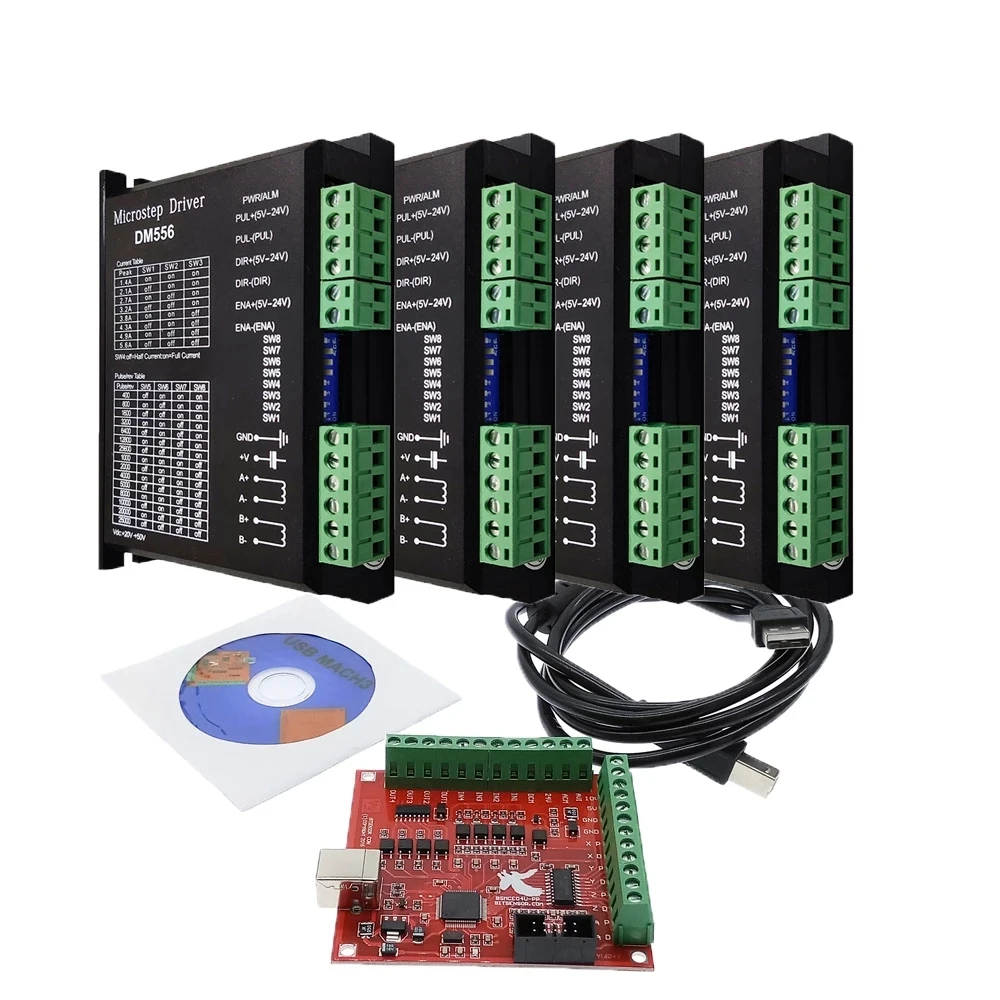 Система управления ЧПУ Red Flying Орел-карта в комплекте, 1 * Red Flying Орел-карта + 4 * DM556 привод + 1 * Черный плоский кабель USB + 1 * CD