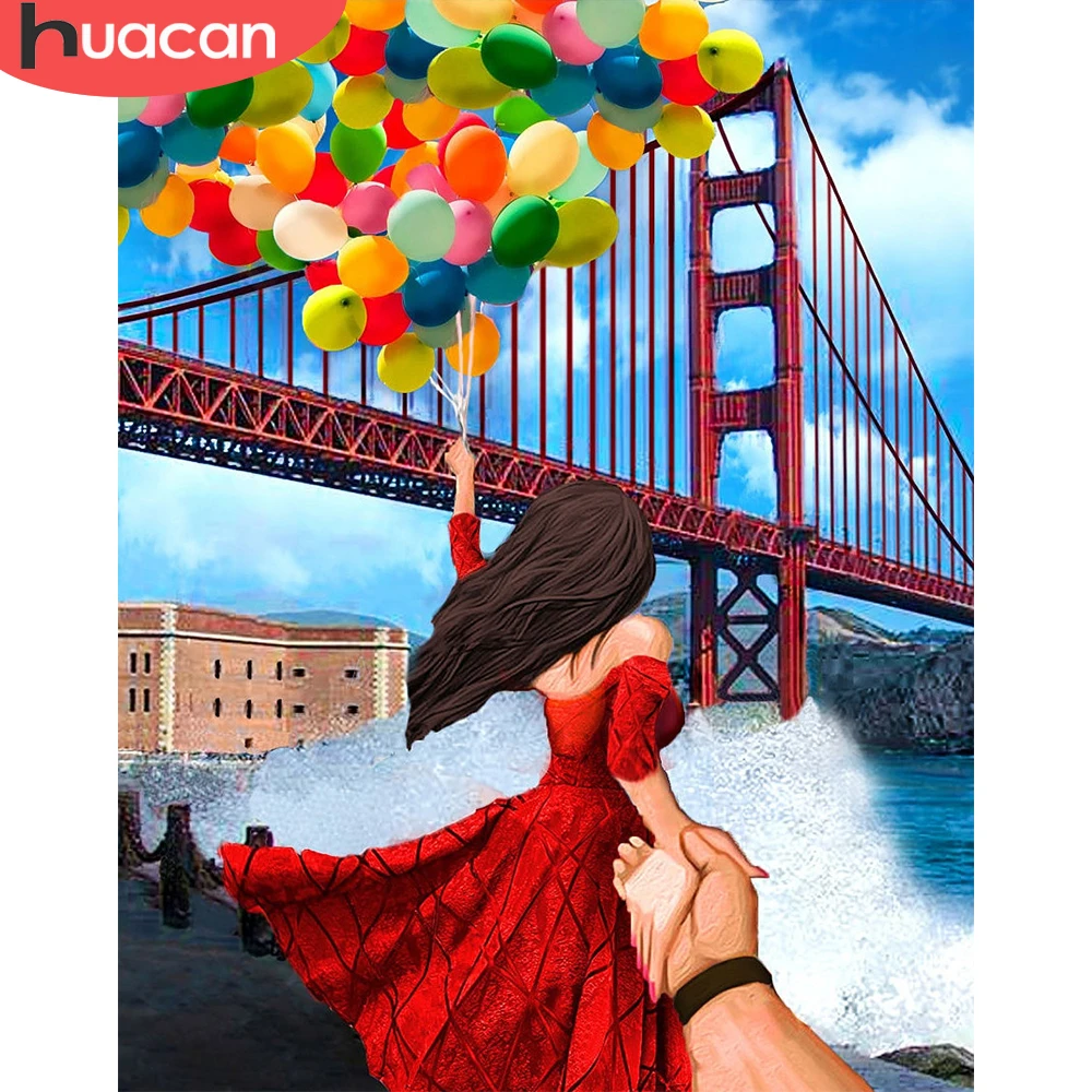 HUACAN картина по номерам воздушный шар девушка современная DIY рамка расписанная вручную холст Раскраска по номерам мост фигурка для домашнего декора
