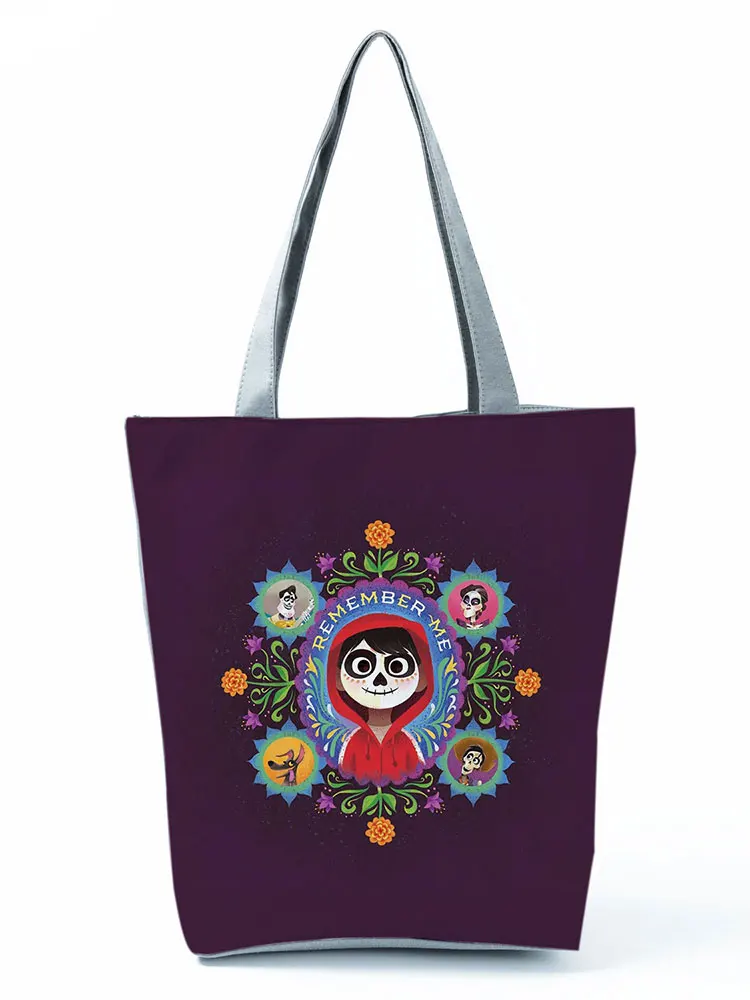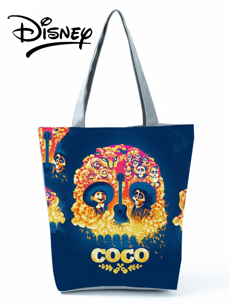 Сумка-тоут Disney Coco ярких цветов, Повседневная Дамская сумочка на плечо, мультяшный экологически чистый многоразовый мешок для покупок, Вместительная дорожная пляжная сумка