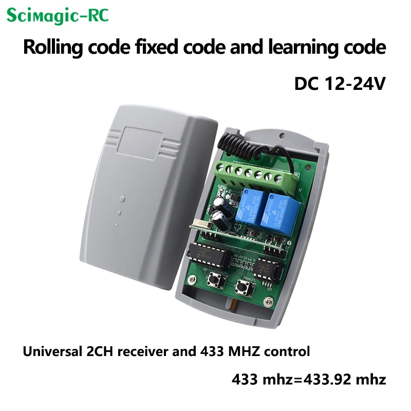 DC 12V-24V Универсальный 433mhz гаражный пульт дистанционного управления приемник 2CH фиксированный код/код прокатки и обучающий код Открыватель двери приемник