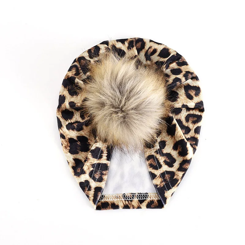 Милый помпон шапочка для новорожденного ребенка мягкая бархатная одежда для маленьких девочек тюрбан шляпа осень-зима леопардовой расцветки детская шапка шапочки Детские шапочки для малышей