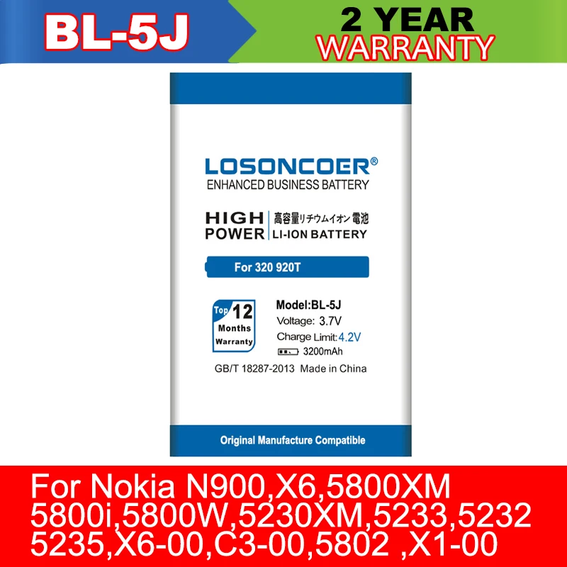 BL-5JFor Nokia N900,X6,5800XM,5800i,5800W,5230XM,5233,5232,5235,X6-00,C3-00