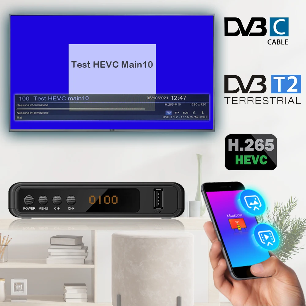 Европейский HEVC 5G DVB C цифровой наземный декодер DVB T2 ТВ-тюнер H.265 основной 10-битный ТВ-Приставка Smart Meecast Cast Tv Stick