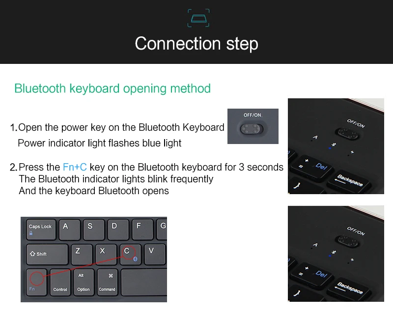 【 1. Откройте bluetooth-клавиатуру [OFF / ON], чтобы включить, включите питание