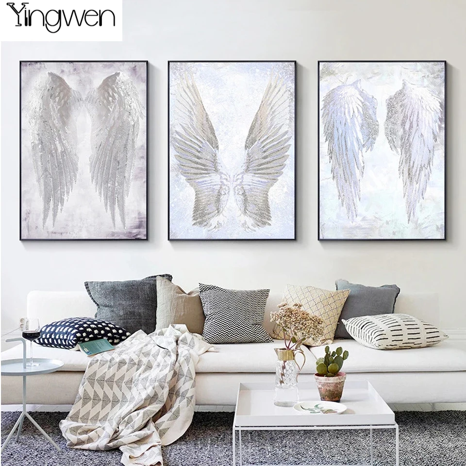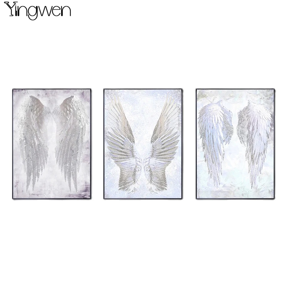 5D DIY Алмазная картина Современная Белая Крылья ангела перо полная Алмазная мозаика вышивка крестиком набор Триптих искусство домашний декор