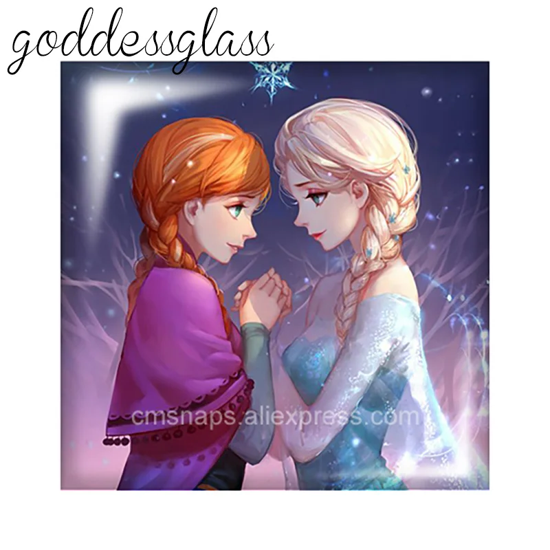 Disney платье принцессы Эльза и Анна квадрат 10 шт. 12 мм20 мм25 мм кабошоны разрисованные изделия из стекла демо с плоской задней частью браслет ювелирные украшения своими руками