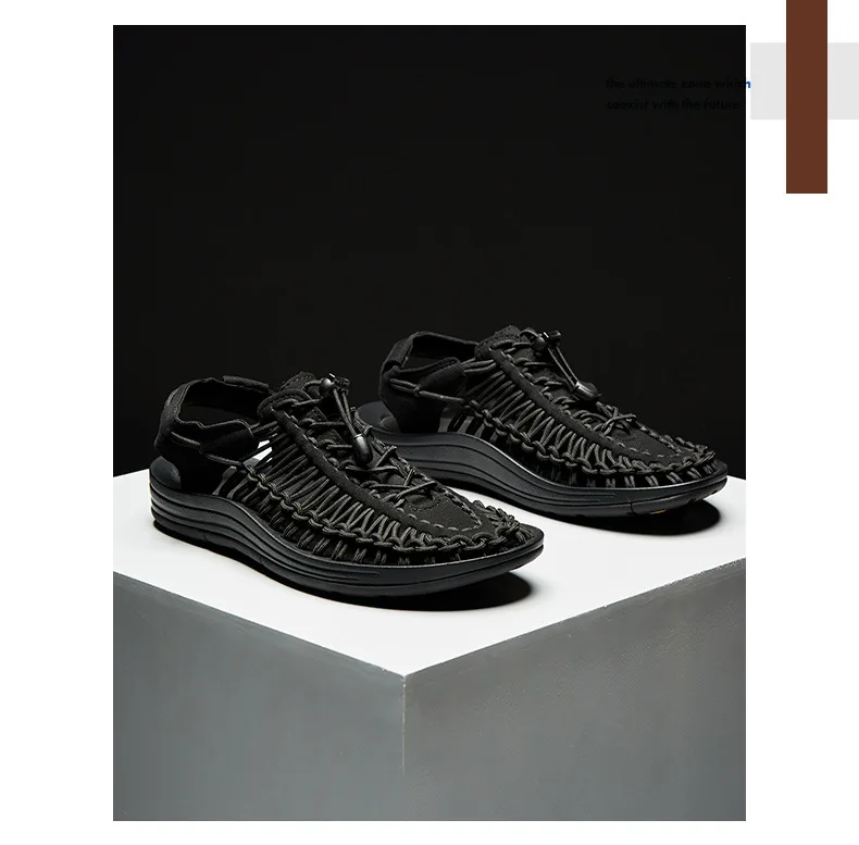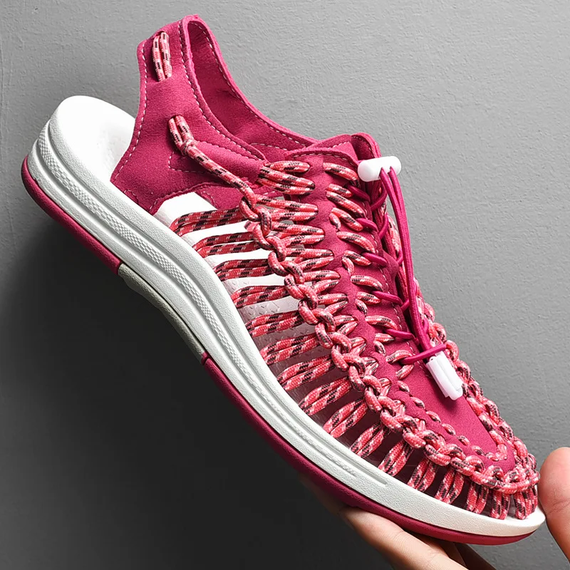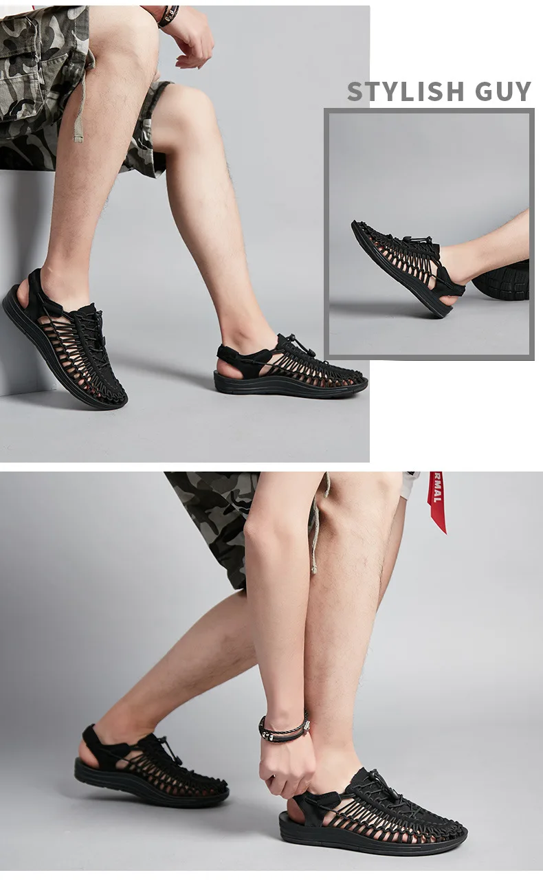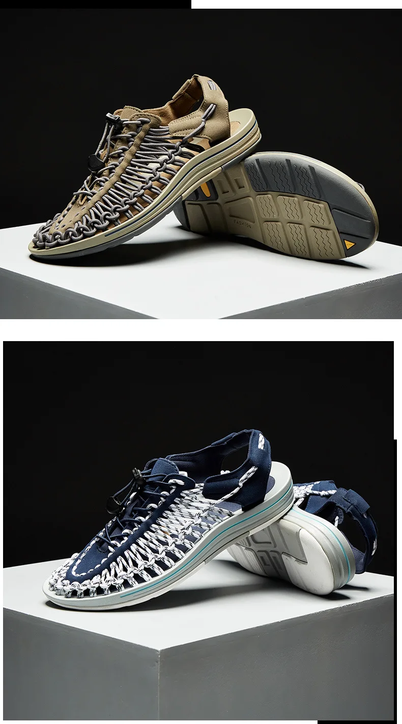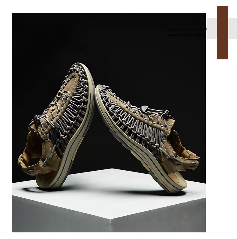 Мужские сандалии-гладиаторы, плетеные, без застежки, повседневные пляжные кроссовки, плоская подошва, летняя обувь, ручная работа