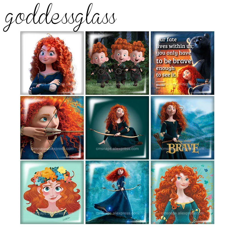 Disney смелая Принцесса Мерида квадрат 10 шт. 12 мм20 мм25 мм кабошоны разрисованные изделия из стекла демо с плоской задней частью браслет ювелирные украшения своими руками
