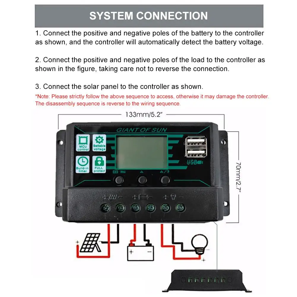 12V24V со слежением за максимальной точкой мощностиPWM 2-в-1 за максимальной точкой мощности, Солнечный контроллер заряда Панели солнечные Батарея интеллигентая (ый) регулятор с двумя USB Порты и разъёмы и ЖК-дисплей Дисплей