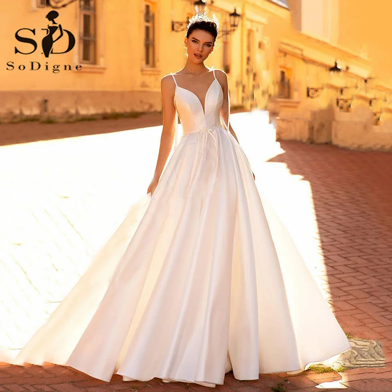 Атласное Бальное Платье soworthy, простое кружевное свадебное плать...