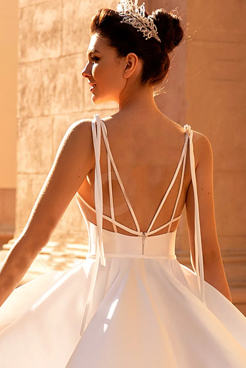 Платье свадебное со съемными рукавами-фонариками и V-образным вырезом