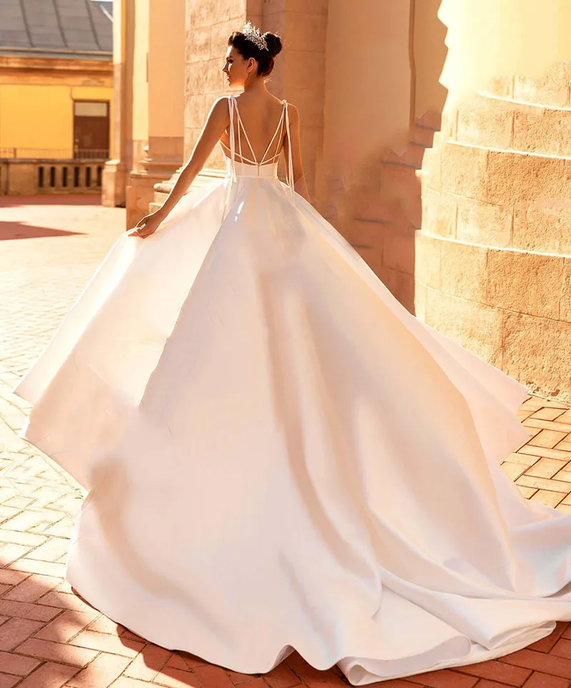 Платье свадебное с V-образным вырезом, открытой спиной и блестками