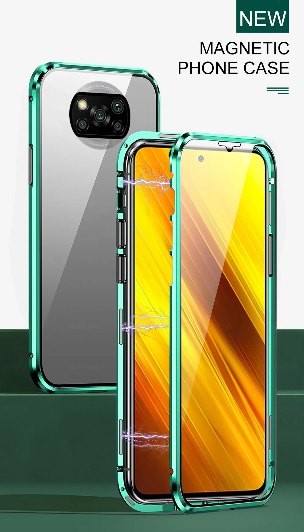 Магнитный чехол с полной защитой для Xiaomi Mi Poco M3 F3 X3 NFC, Redmi Note 10S, 9T, 10, 9S, 9, 8, 7, 9A, 9C, 8T Pro, двойное стекло, 360