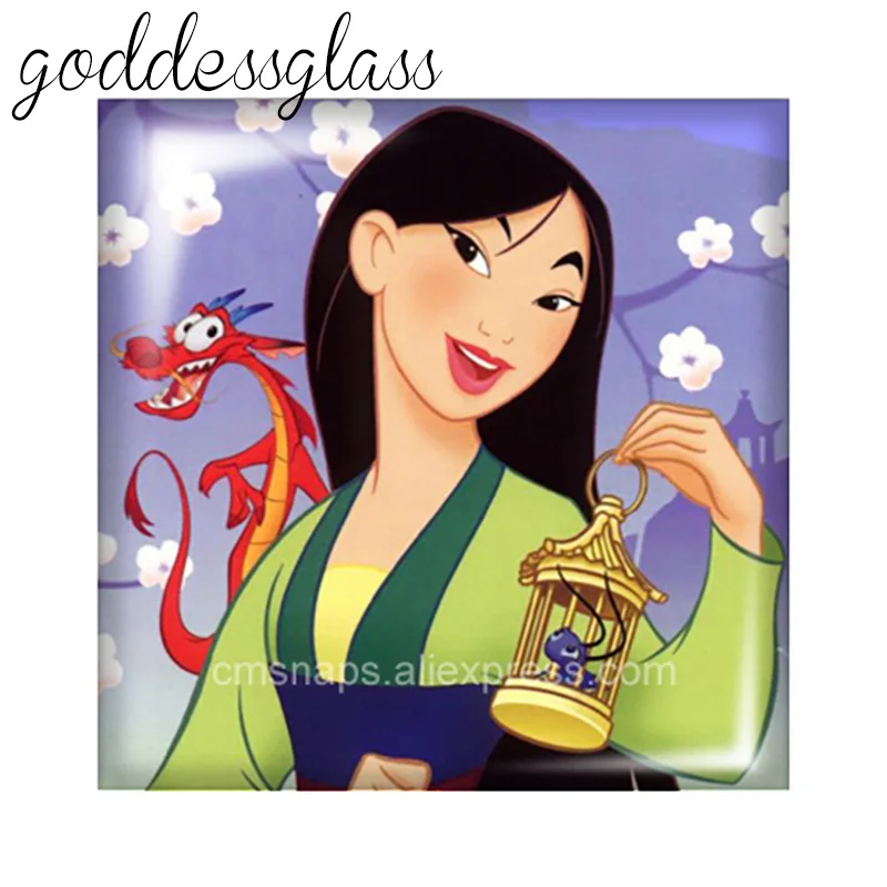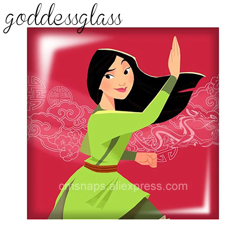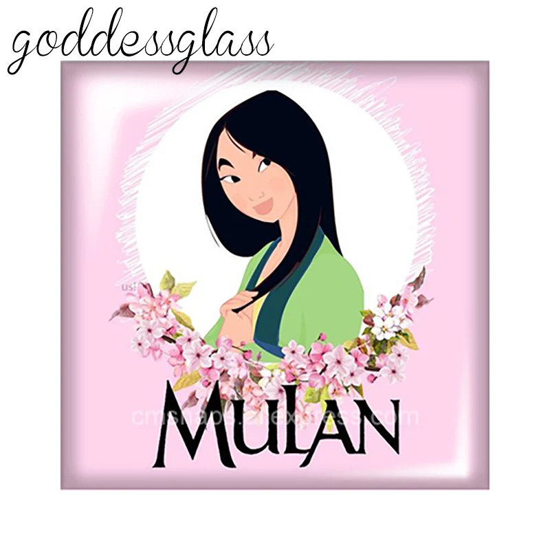 Disney Принцесса Мулан квадрат 10 шт. 12 мм20 мм25 мм кабошоны разрисованные изделия из стекла демо с плоской задней частью браслет ювелирные украшения своими руками