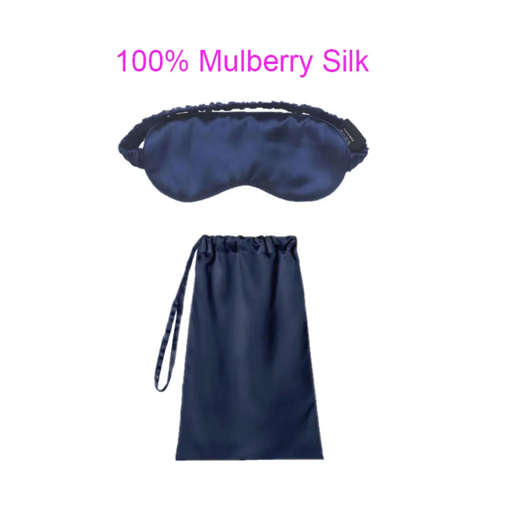 Комплект из 2 предметов 100% чистый шелк тутового шелкопряда маска для глаз из шелка для хранения сумка-кисет для сон в путешествиях 19 Momme