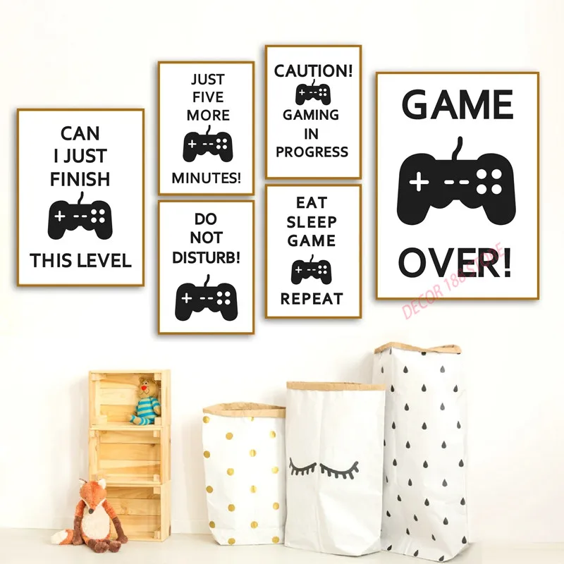 Постеры с изображением видеоигр, черно-белые Декорации для спальни мальчика-подростка, настенные картины для украшения игровой комнаты, художественная работа с цитатами