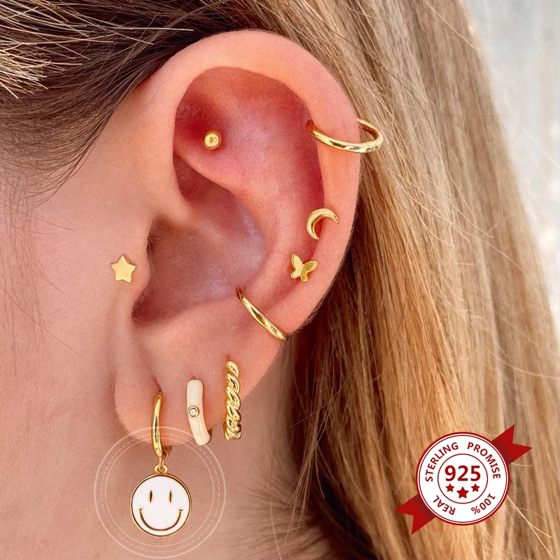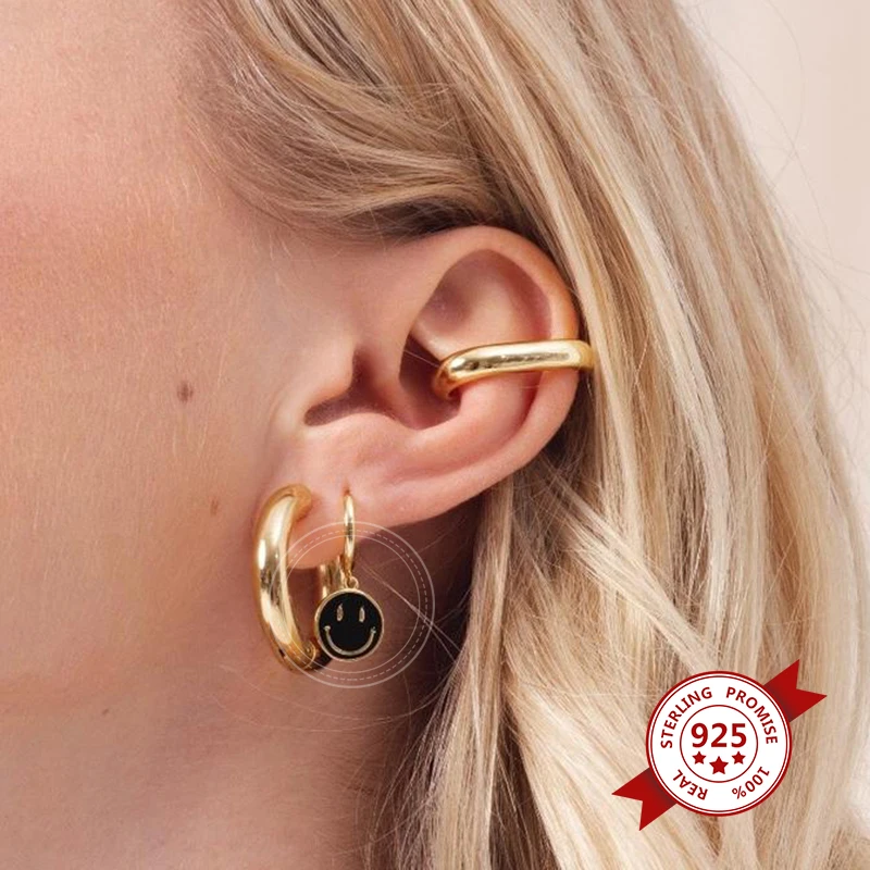 925 серебряные изысканные серьги-кольца со смайликом, модные ювелирные изделия для женщин, подарки на день рождения, Корейский минималистский стиль