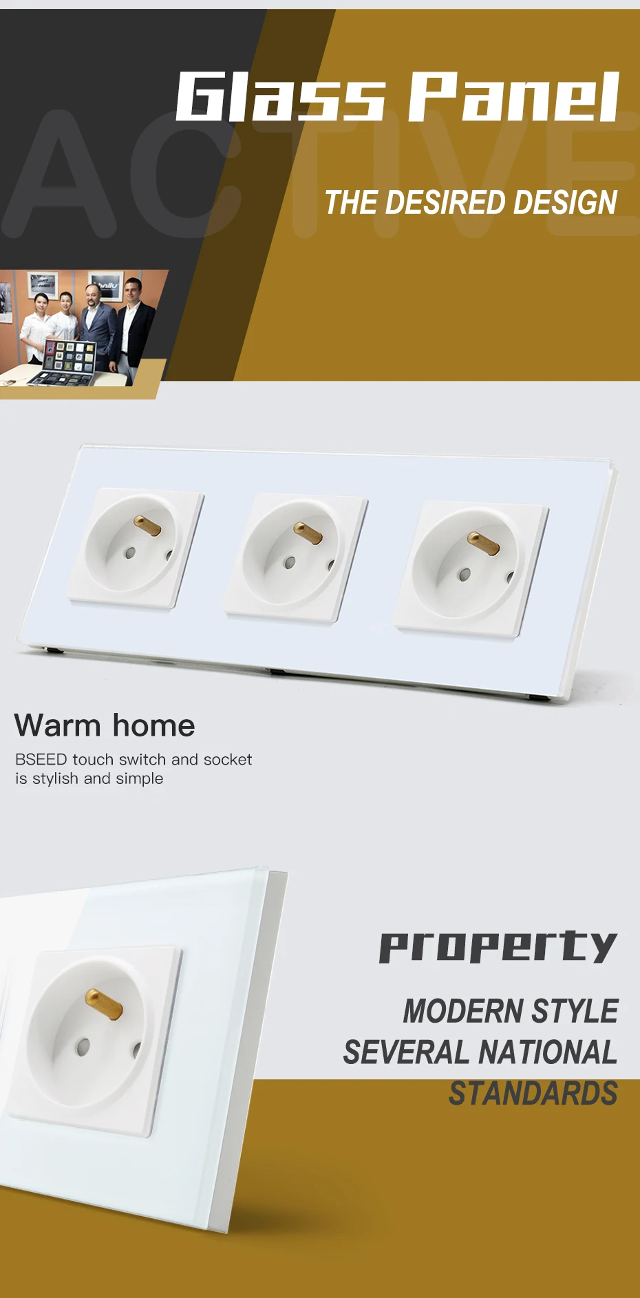 BSEED Франция один разъем с двойными стенками, Мощность розетки тройной Стекло розетки четыре кадра французский Вилки Мощность розетки 16A