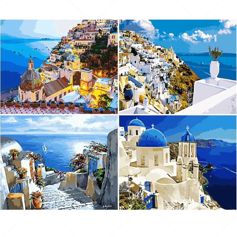 5D алмазов картина Санторини Греция Ландшафтная мозаика с бриллиантами Diy полный набор для рисования с круглыми камнями и полотном с вышивкой крестиком Стразы Декор