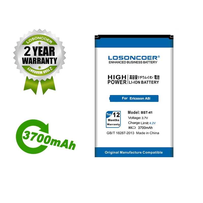 100% оригинал LOSONCOER 3700 мАч BST-41 BST 41 батарея для Sony Ericsson XPERIA A8i M1i X1 X2 X10 X1a X2a Play Z1i X10i