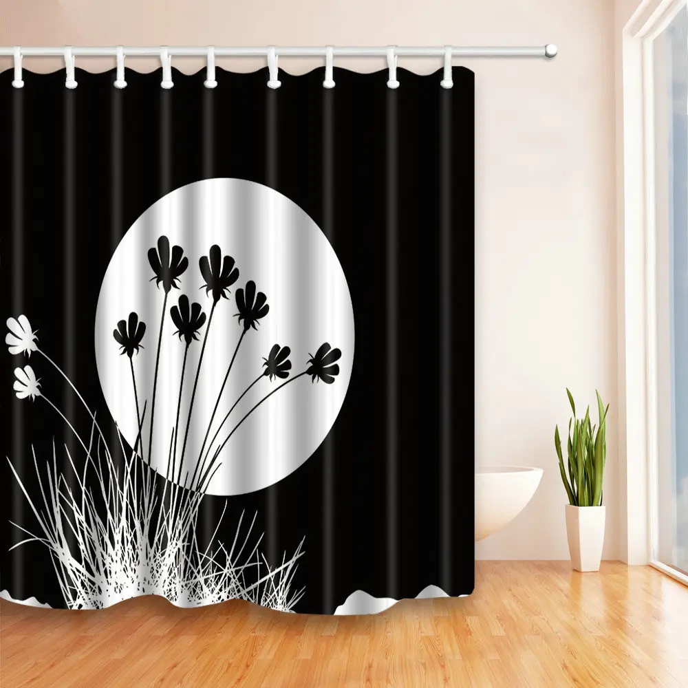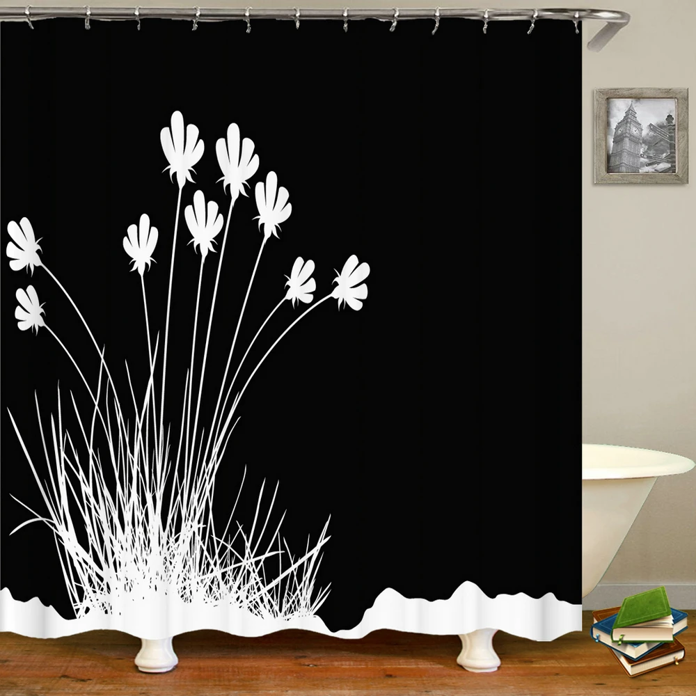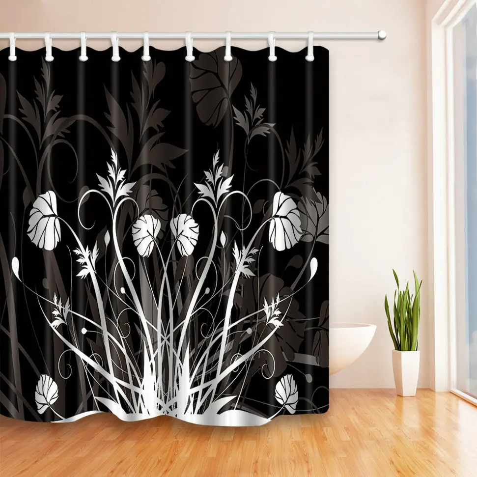 Черный белый цветок занавески для душа Водонепроницаемая занавеска для ванной 3d печать Современная полиэфирная Штора для ванны ткань 12 крючков 180*180 см