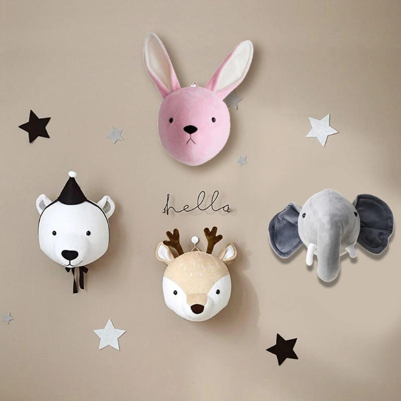 Декор для детской комнаты C5AA, 3D головки животных, Настенный декор для детской комнаты, украшение для детской комнаты, мягкая установка
