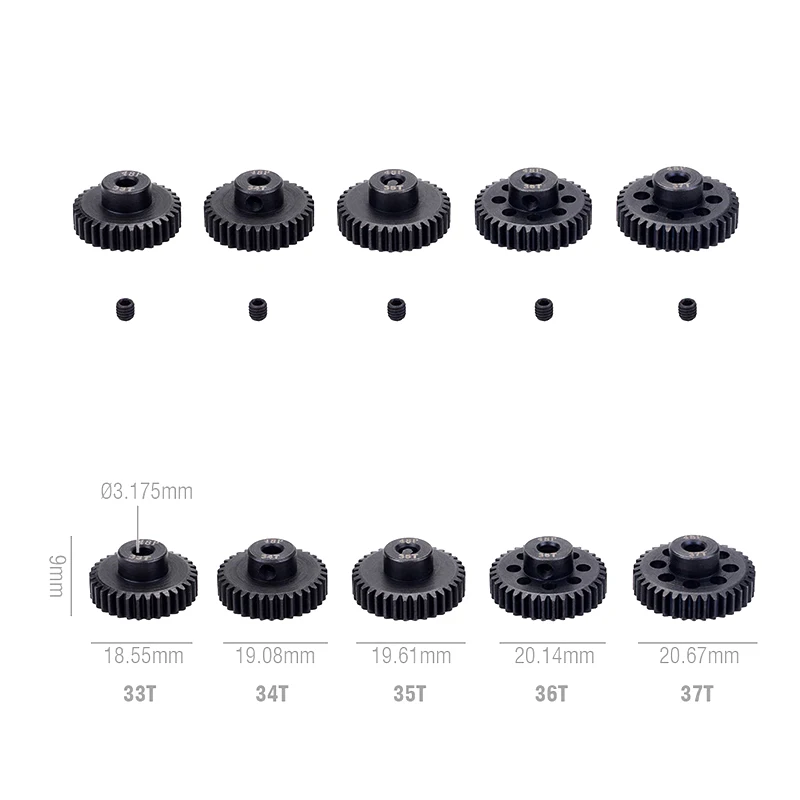 Шестерня двигателя 48DP, 3,175 мм, 26t, 27t, 28t, 29t, 30T, 32t, 33T, 34T, 35T, 36T, 38T, 40T, черная стальная металлическая Шестерня двигателя для радиоуправляемой модели автомобиля 110